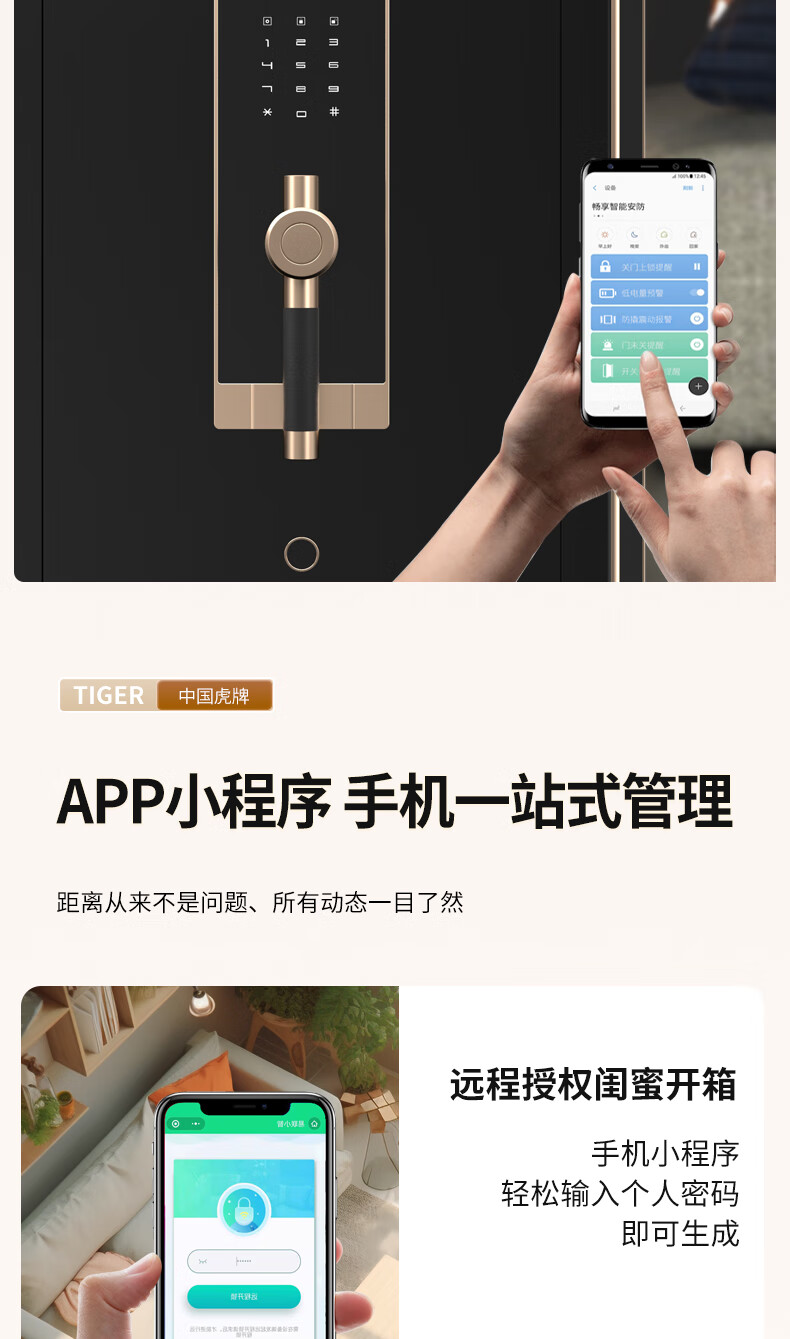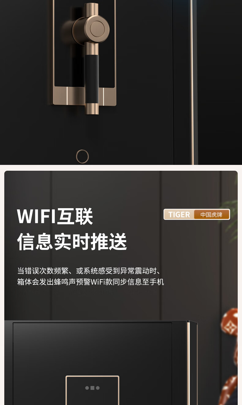 虎牌保险柜3C认证防火2025新款高端人脸识别WiFi智控加密重型保险柜长安系列指纹家用办公智能保险箱 75cm 钛黑色 WiFi+指纹+密码+钥匙+远程
