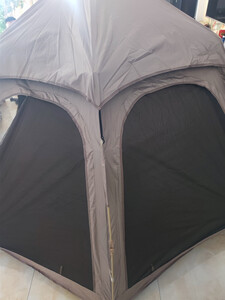 防水效果:防水效果还未实际使用,待进一步认证 适用场景:主要适用于沙滩海边等户外活动 容纳人数:实际展开使用可容纳3-4成人躺用,5-6成人坐用 透气效果:两门四窗透气通风,两门可开,门帘可卷可撑,四窗带有纱窗,从内拉锁打开。 展开类型:方便展开,速开速收。单人即可操作。 六角帐篷空间大,利用率高,美中不足就是窗户不能单独对外打开,内拉锁的设计很人性化。 商家专门赠送了野餐垫和内衬防潮垫。总体体验感不错,待实际使用后再来追评。