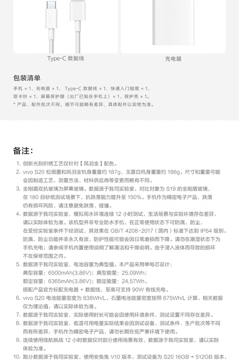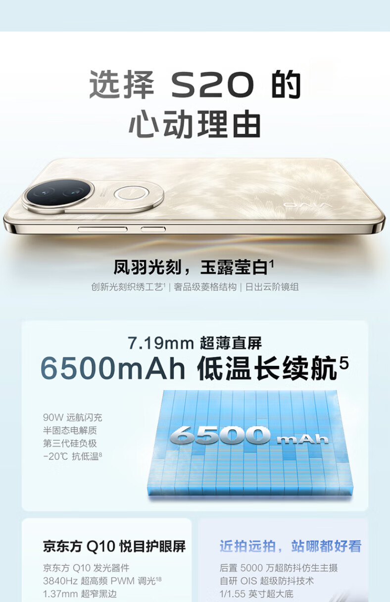 vivoS20 新款5G手机 6500mAh 长续航 超薄直屏 柔光自拍 AI 手机 s20 凤羽金 16GB+512GB