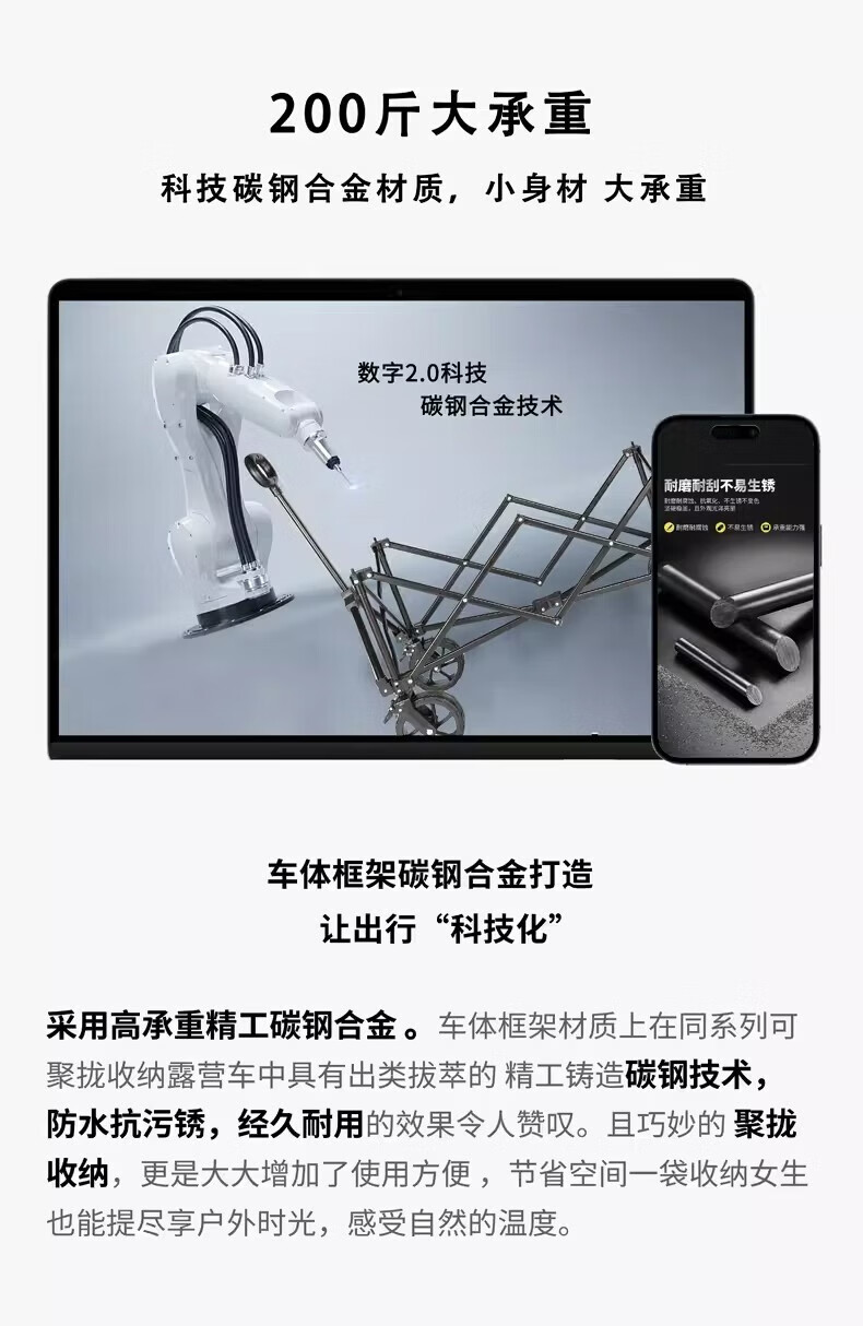 QOMOLANGMA公园款露营车户外野营野餐小拖车溜娃折叠手拉车拉货取快递买菜车 【小号餐车】小号碳钢车+新铝合金桌板 140L