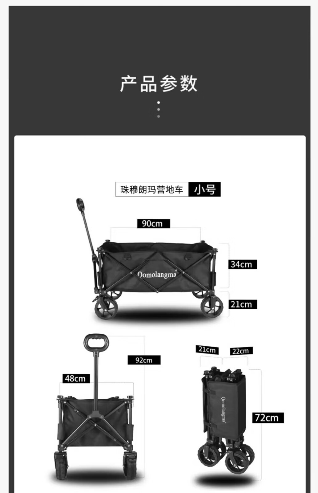 QOMOLANGMAqomolangma营地车露营车户外折叠推车拖车野营车钓鱼拉车 挪峰&珠穆朗玛联名160L越 有刹车
