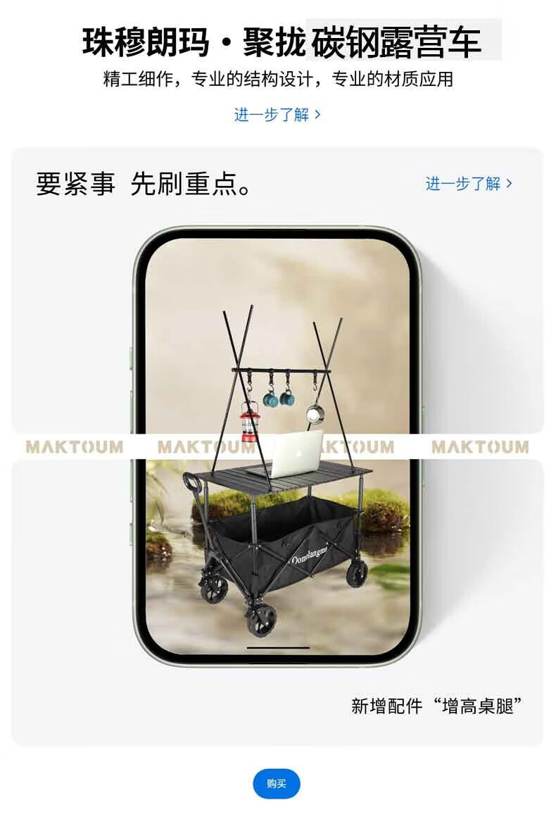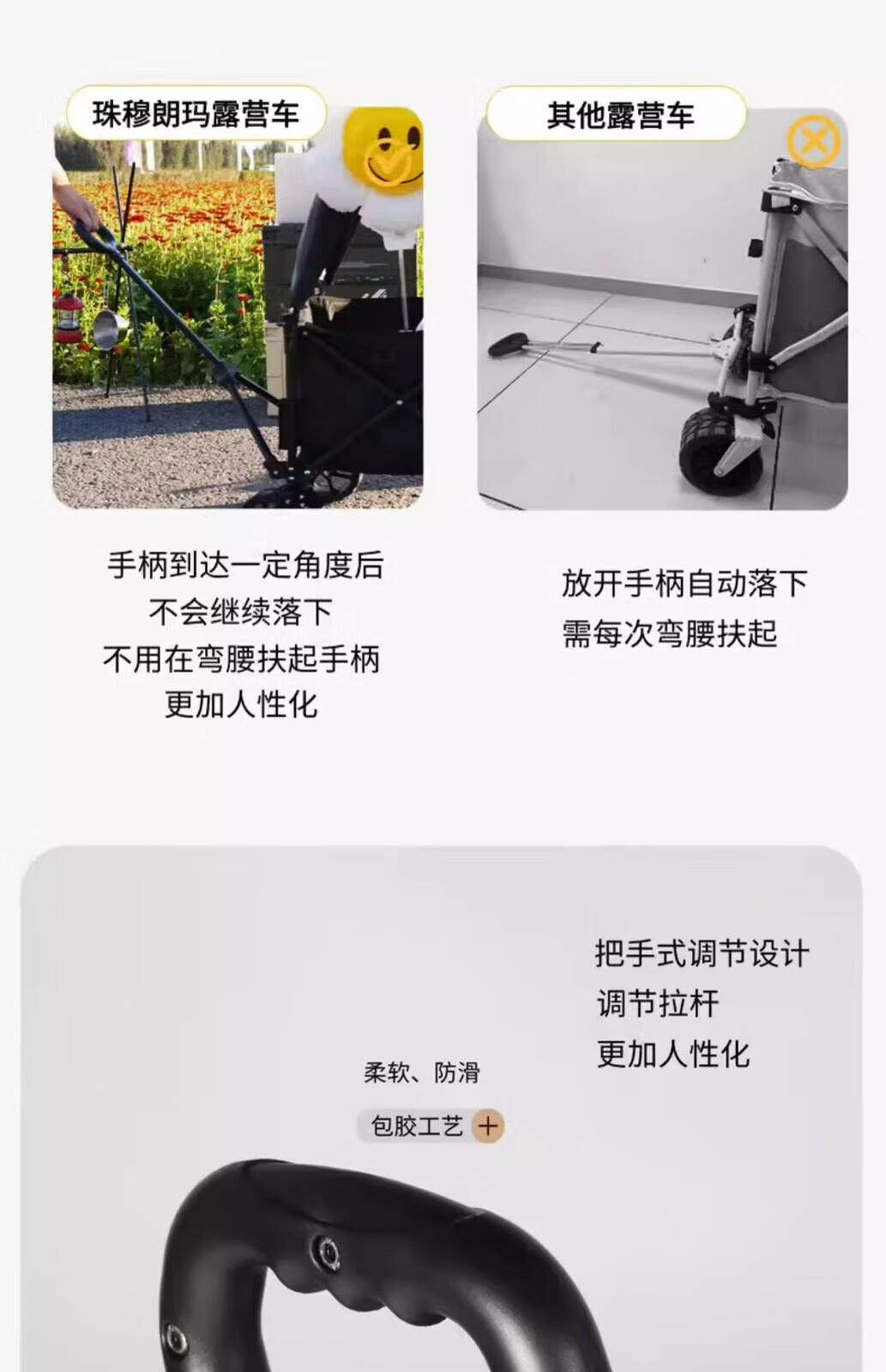 QOMOLANGMA珠穆朗玛营地车露营车户外折叠手推车野营郊游烧烤野餐 Qomolangma_QA5K咖色轻型露营车