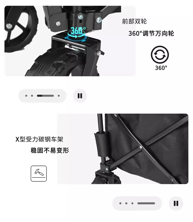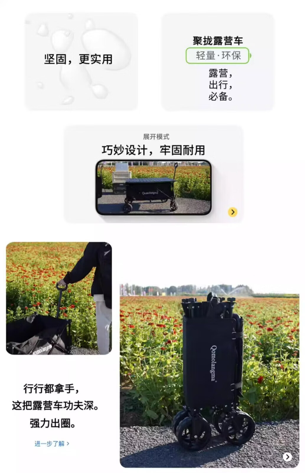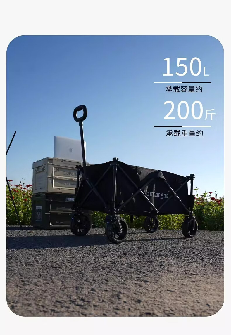 马科途公园款露营车户外野营野餐小拖车溜娃折叠手拉车拉货取快递买菜车 【公园款】小号黑色露营车 140L