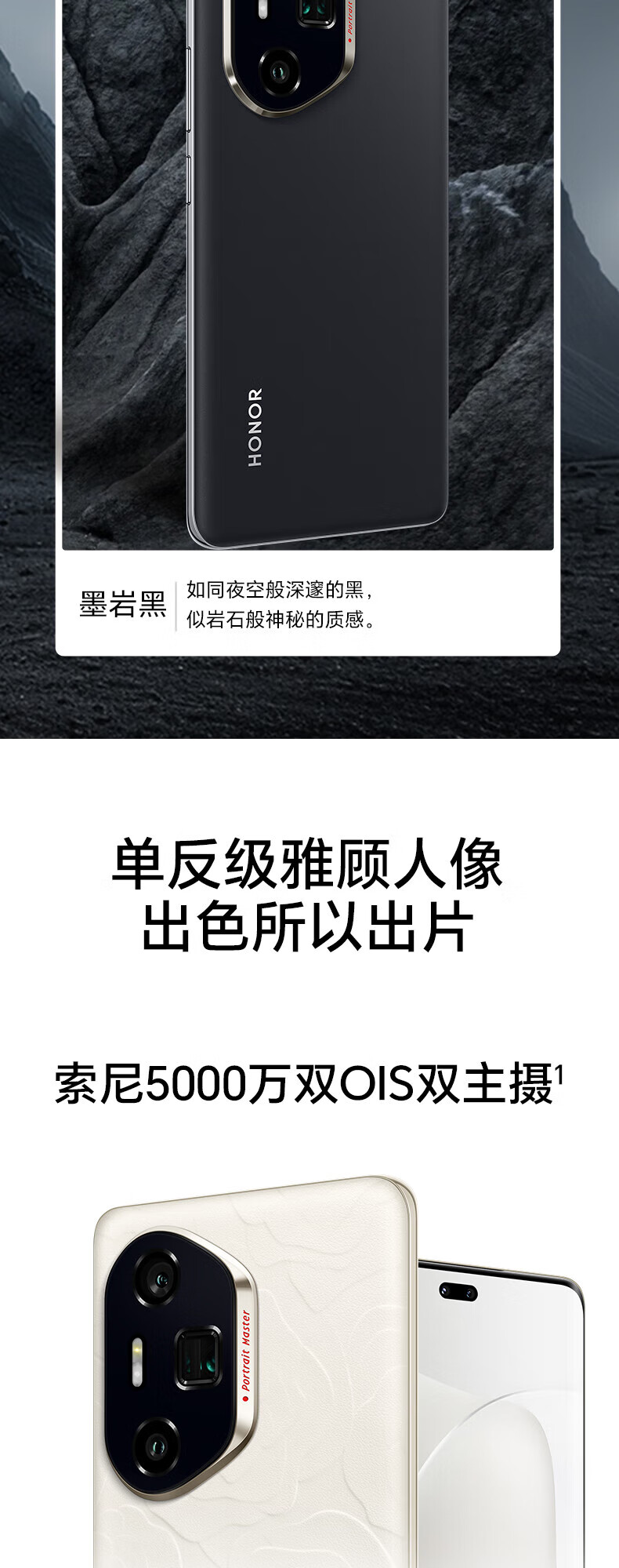 荣耀300Pro 单反级雅顾人像 绿洲护眼屏 第三代骁龙8 5GAI 墨岩黑 16GB+512GB 单机+原线原充+全国联保