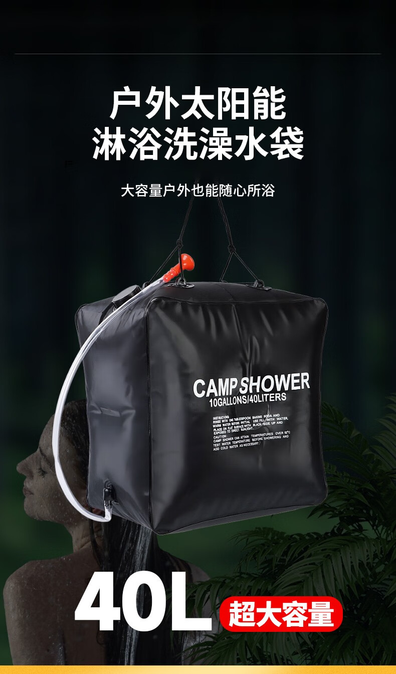 天丂 户外淋浴袋 太阳能热水袋 便携式晒水袋野营洗澡水袋旅行储水袋 【40L黑色】
