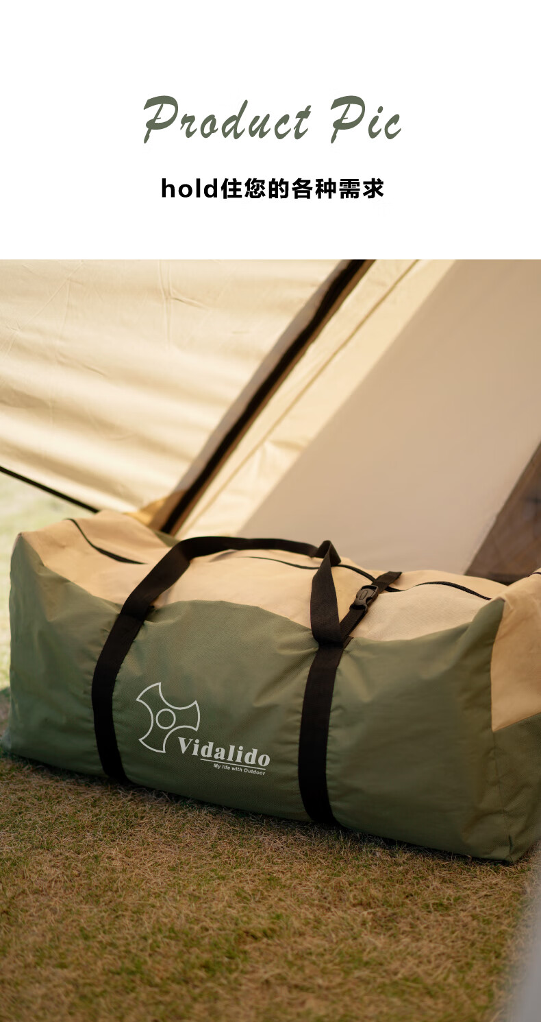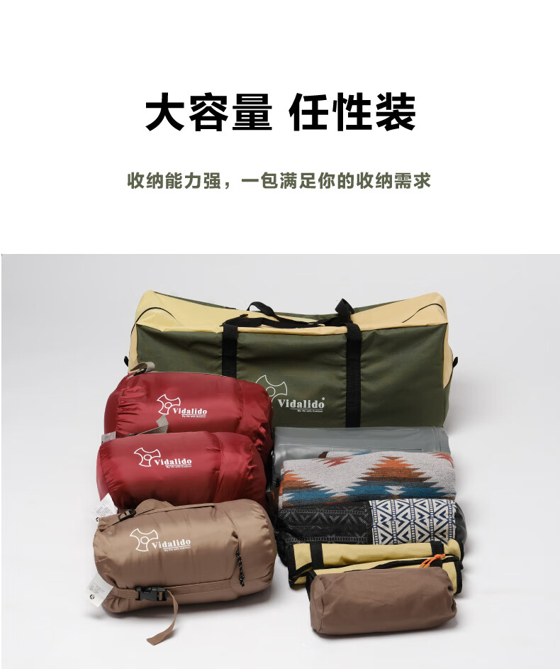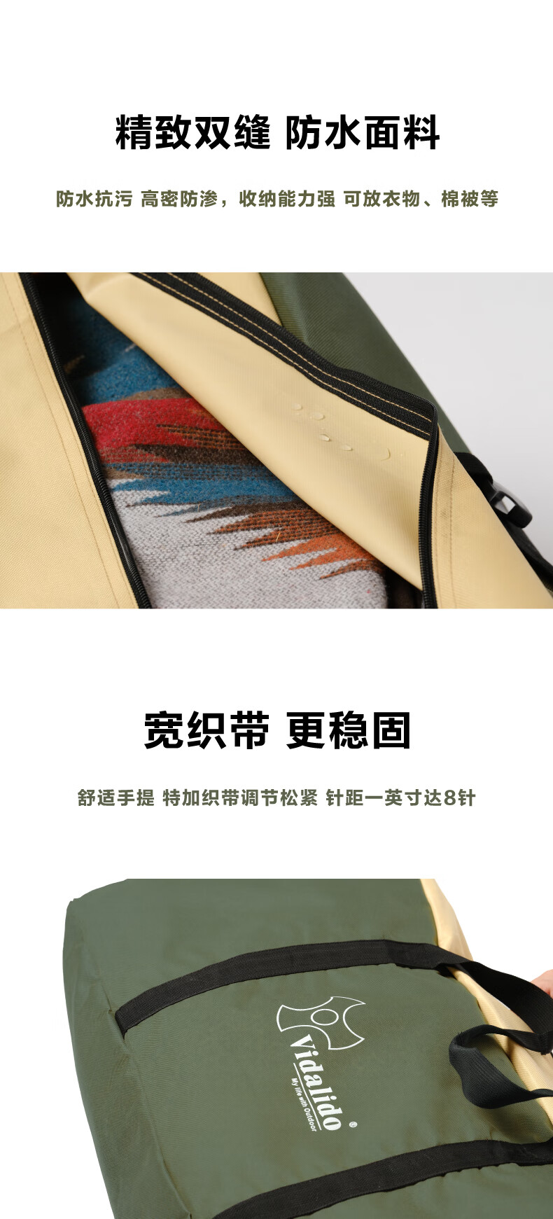 Vidalido露营装备包太实用!容量能塞全套露营家伙,帆布材质耐造抗刮,卡其拼军绿颜值耐看,提手结实不勒手,露营党闭眼入的好物!