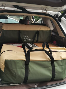 适用场景:露营、野餐、自驾 防水效果:防水好,里面一层专防水的 透气效果:透气性好,设计科学 便携性能:携带方便,容纳空间大,可以放各种帐篷、天幕、露营垫、各种帐篷杆、支架、露营钉,总之大号的空间巨大,小号刚好防一个帐篷和一个充气垫子,足够装载出游露营各种装备。是一次满意的选择,推荐大家够买。
