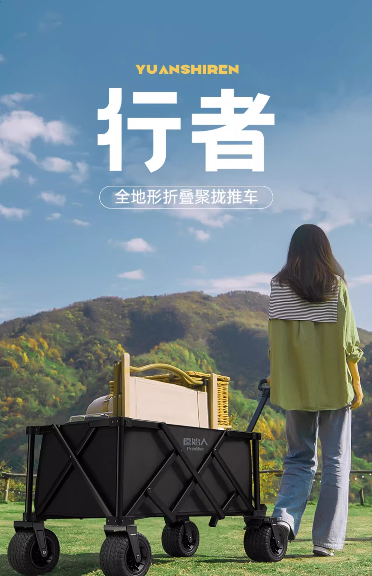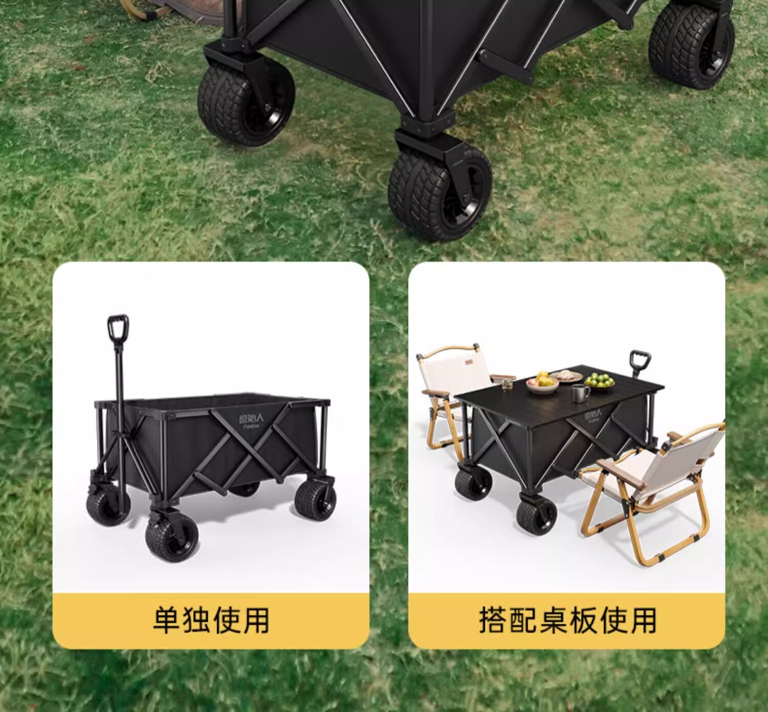 原始人行者露营推车户外营地拖车可折叠手推野餐野营手拉车桌板 木纹大号行者聚拢推车铝合金桌板