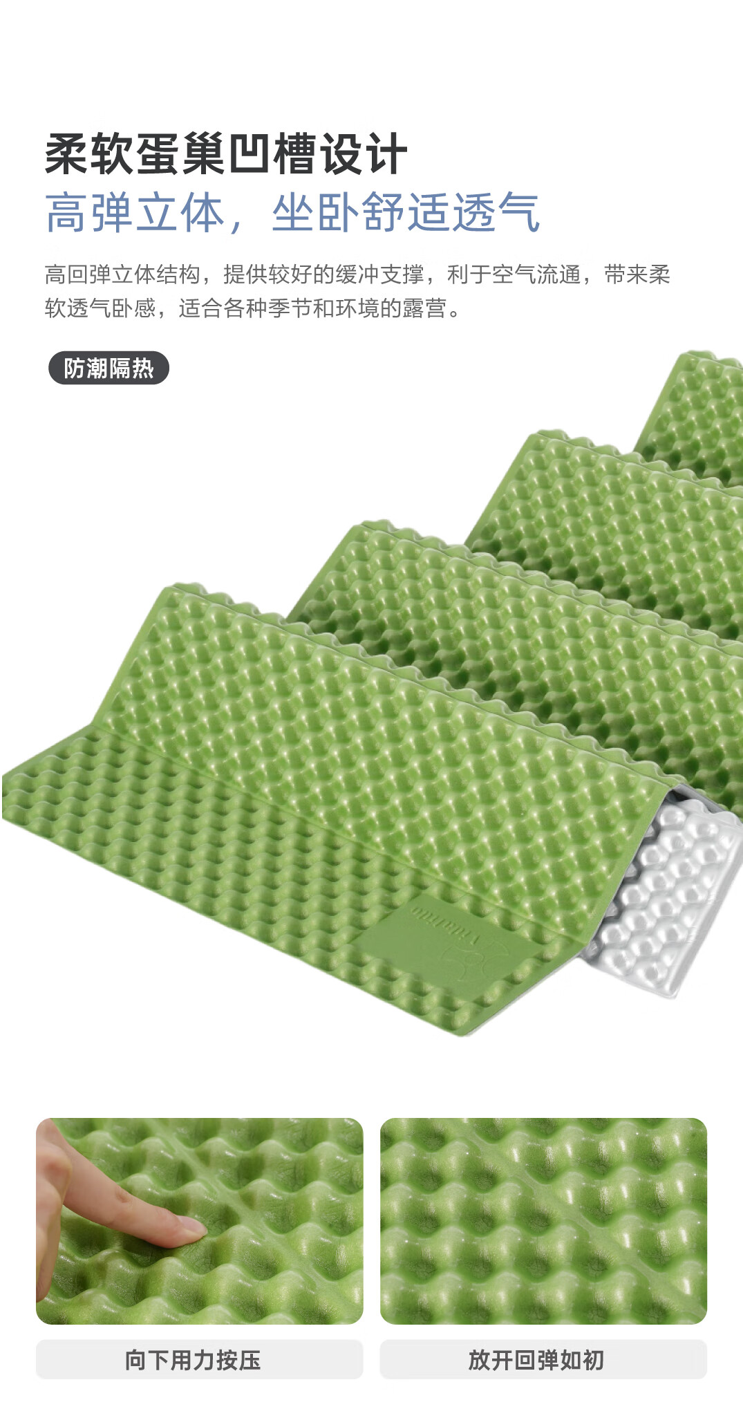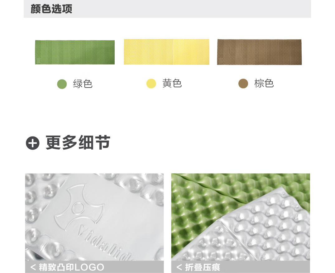 vidalido维达利多徒步轻量化蛋巢垫防潮垫隔热垫折叠便携加宽加厚垫子 绿色