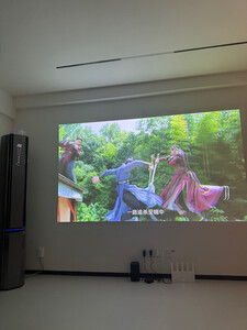 用了几天才来评价,个人感觉效果很好,图片是上午10点半拍的,效果很清晰,用的黑金幕布!其实感觉投到墙上效果也很好!音质不错,视觉效果不是电视能比的,清晰度我感觉不比电视差,真4K,晚上开灯效果也很好,但是120寸视觉效果太震撼了,很满意!