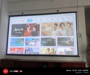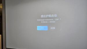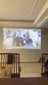 装好后直投白墙的效果,挺好的,如果再配上一块菲涅尔幕布应该更惊艳!这款机子很智能,自动对焦和校正,新手小白也能轻松上手,清晰度和音响效果都不错,噪音也很小,完全能接受,如果想开灯欢迎就得需要搭配幕布才达到清晰的效果,各方面都很出色,还在观望的可以下手了!