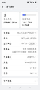 OPPOK12Plus全网通5G展机大内存6400mAh长续航5000万像素拍照神器 玄武黑 12GB+512GB 单机+原装快充+质保一年