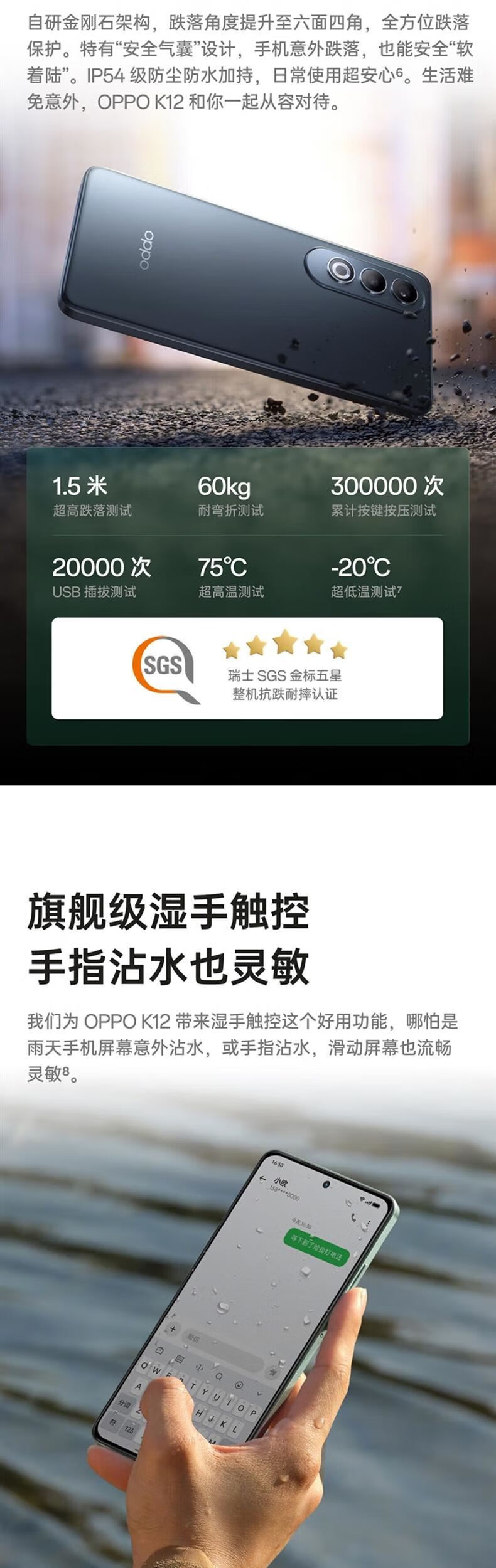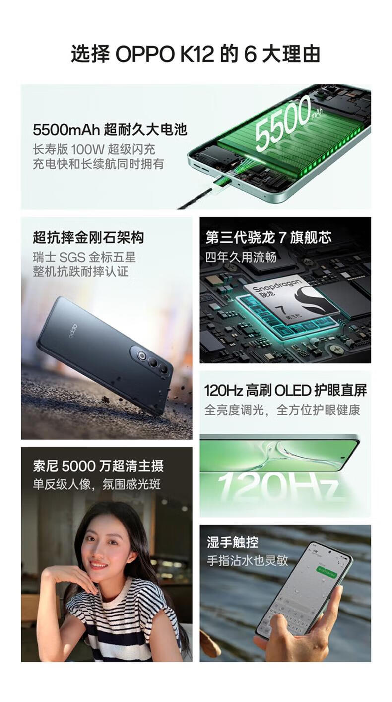OPPO K12 【全新未激活未拆封+全国联保】超抗摔金刚石架构,5500mAh超长续航,第三代骁龙7旗舰芯 青云 12GB+512GB