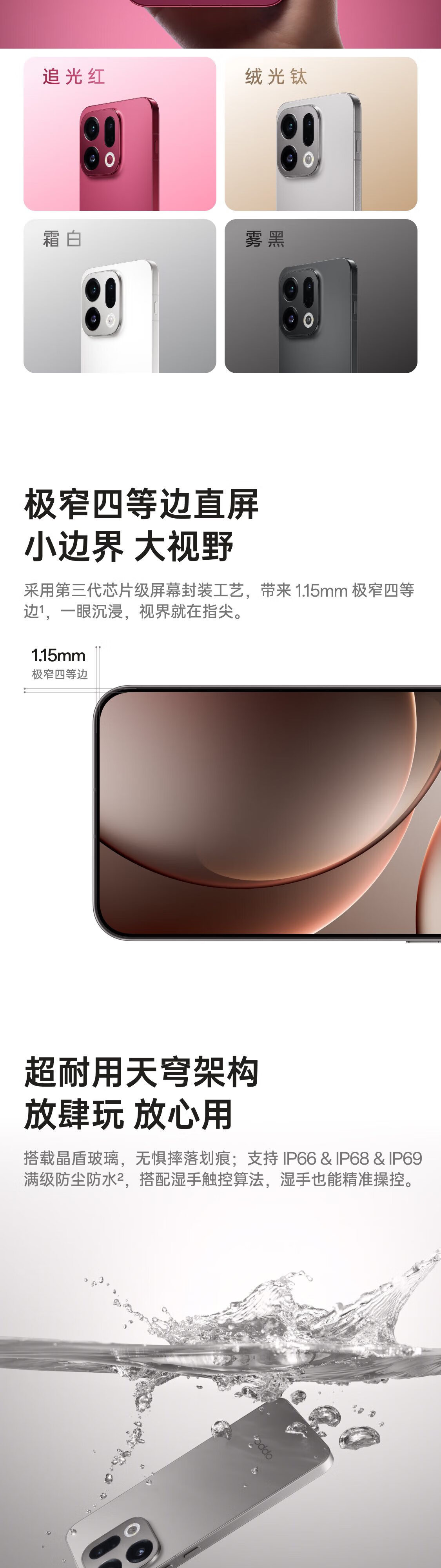 影像党狂喜!哈苏全焦段8K超清直出太顶了,风景色彩通透有质感,人像虚化自然到发丝都清晰,4K实况照片每帧都是壁纸,随手拍都不用后期。7025mAh大电池彻底告别电量焦虑,重度用一天还剩电,80W快充40多分钟满电,天玑9500玩《原神》也稳,1nit护眼直屏熬夜刷手机也不刺眼,旗舰体验拉满~ 收起