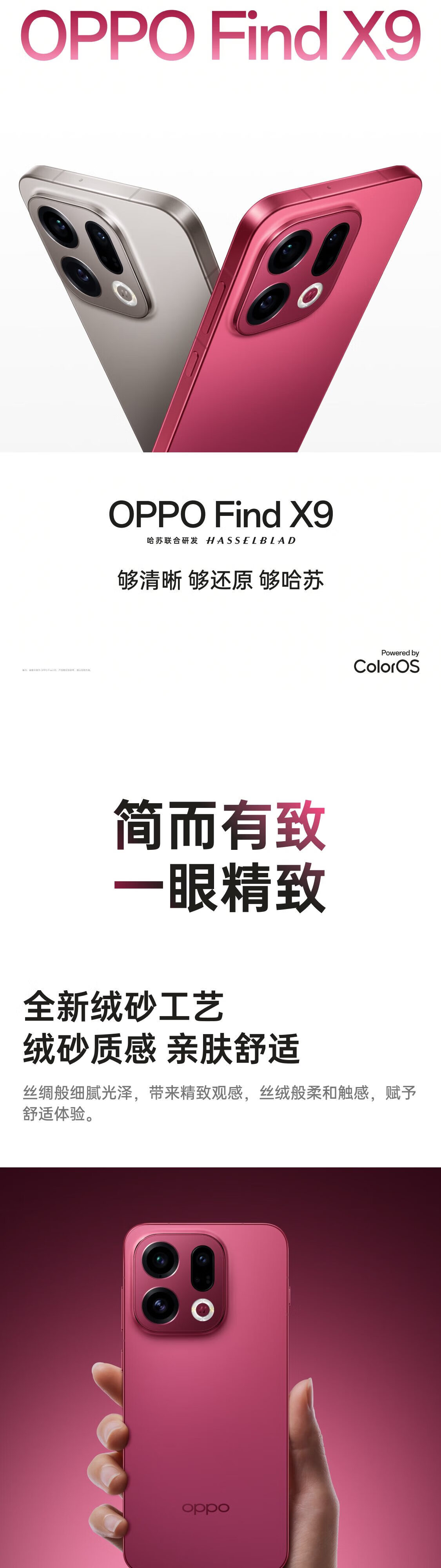 OPPO【政府补贴】OPPO Find X9旗舰手机 AI新品哈苏影像【孙颖莎同款】findx8升级findx9 绒光钛 16GB+1TB
