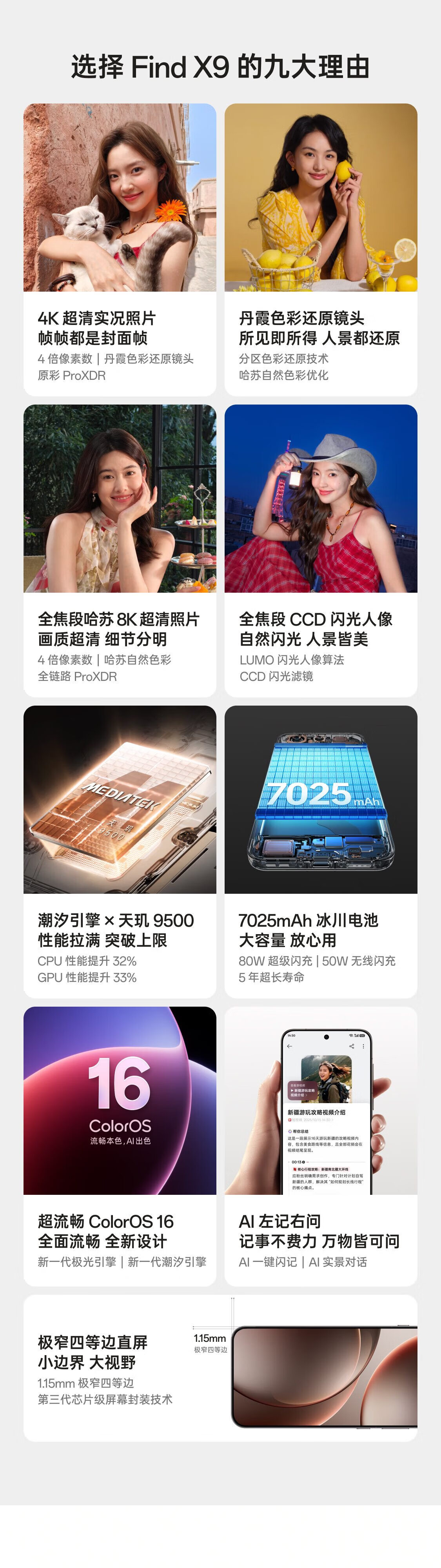 OPPO 【享24期】OPPO Find X9 旗舰手机 oppofindx9 超清实况照片 7025mAh 冰川电池 丹霞色彩还原镜头 绒光钛 16+1TB