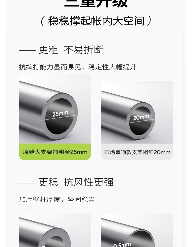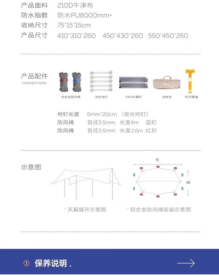 商品质量有保障,物流快捷省心,包装完好无损。 性价比很高,四根杆子,更高的活动空间,额外的2根立杆也很有分量,可以和天幕一起装在提袋里边,很方便。