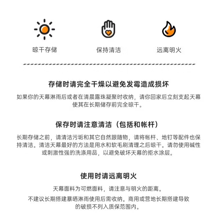 买回来后用过一次,质量很好做工也精细,天幕真的是很大,业务不熟两个人搞了半天也没搞好,后来四个人一起用了十多分钟才搞定。抗风能力也很好,晚上起了大风看着别人的天幕都吹倒了,咱的还稳稳的屹立在那,很不错。