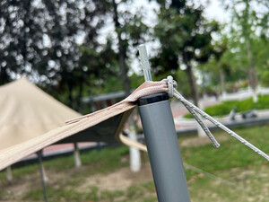 东西整体还不错 ,只是四杆26平的天幕,金属扣只有2个,另外两个找客服,客服说,是两侧面是直接通过编织孔穿过去支撑的。 我实在不解,为什么省掉2个金属扣设计?