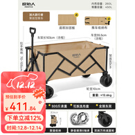 原始人露营推车户外营地拖车超大可折叠手推野餐野营手拉车小拉车 450L 超大越野款卡其【φ25特粗钢架+双刹万向快拆轮】