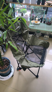 这椅子展开以后比较大个,一般户外的要大一些,坐上去就很舒服,而且后背有两档可以调。可以调到半躺的姿态。但是很多连接件都是塑料做的,而且那塑料看过去好像有点偏软,不知道长期使用结实度如何,另外就是收纳起来的体积稍微有点大。
