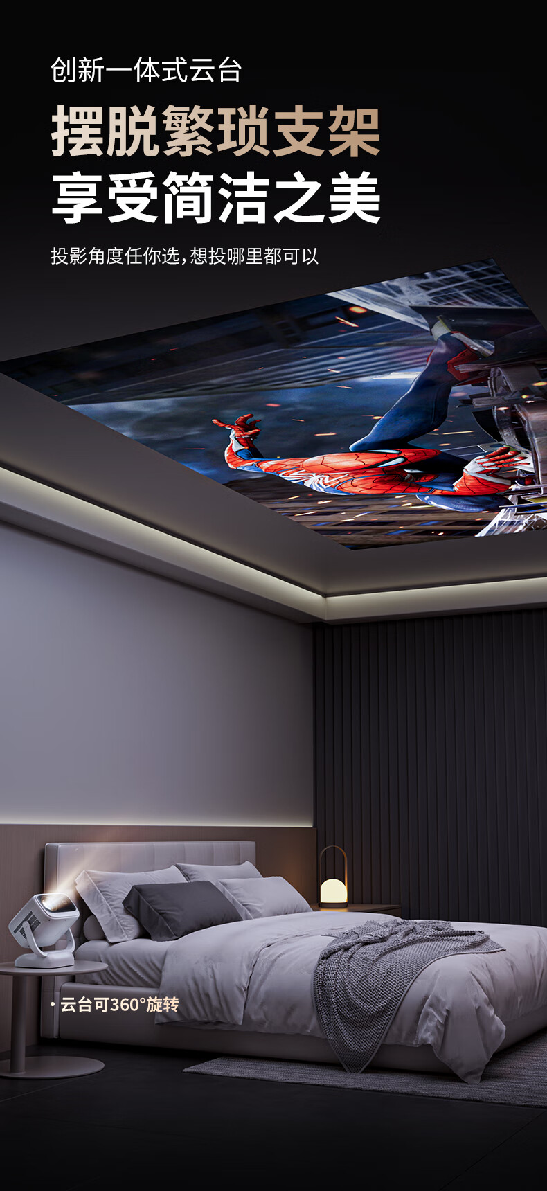 虾皮【品牌旗舰】虾皮U5云台摩天轮投影仪家用超高清高亮便携4K解码家庭影院投墙客厅卧室手机投影 AI语音版