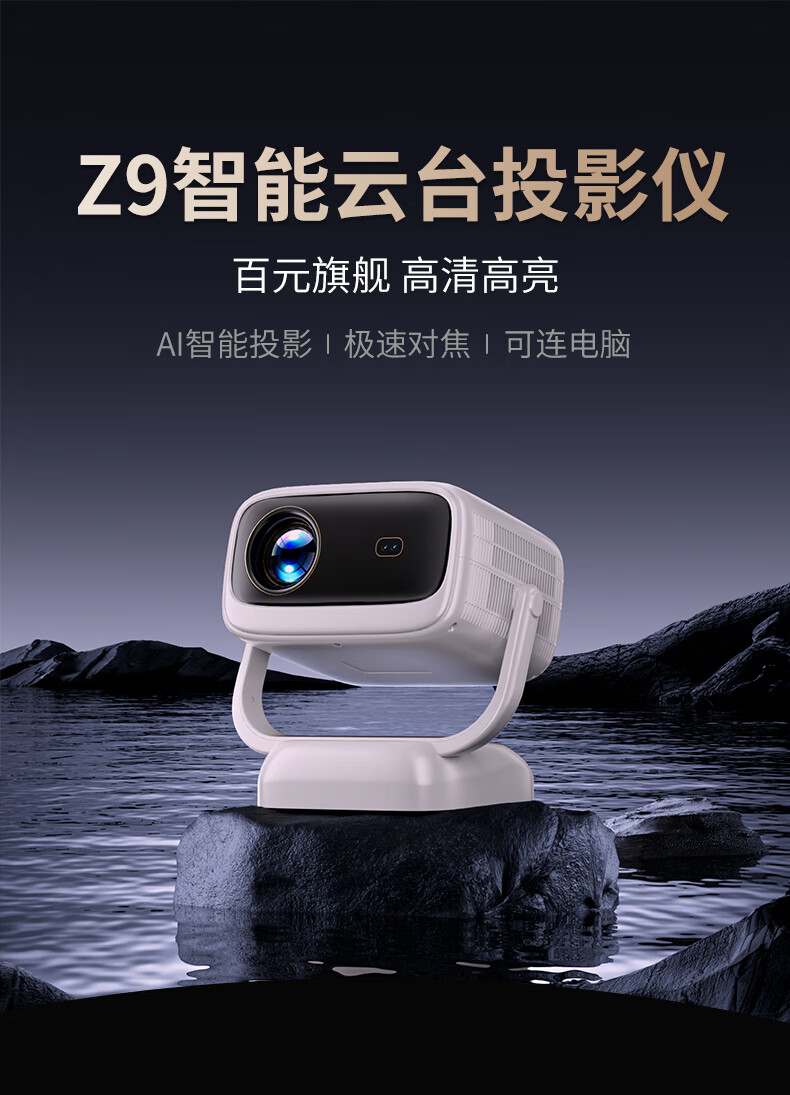 虾皮【云台投影】Z9智能投影仪家用超高清家庭影院白天直投便携手机投屏同屏卧室客厅3D小型办公投影机 语音版