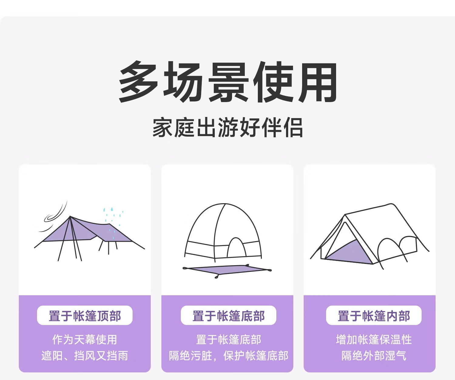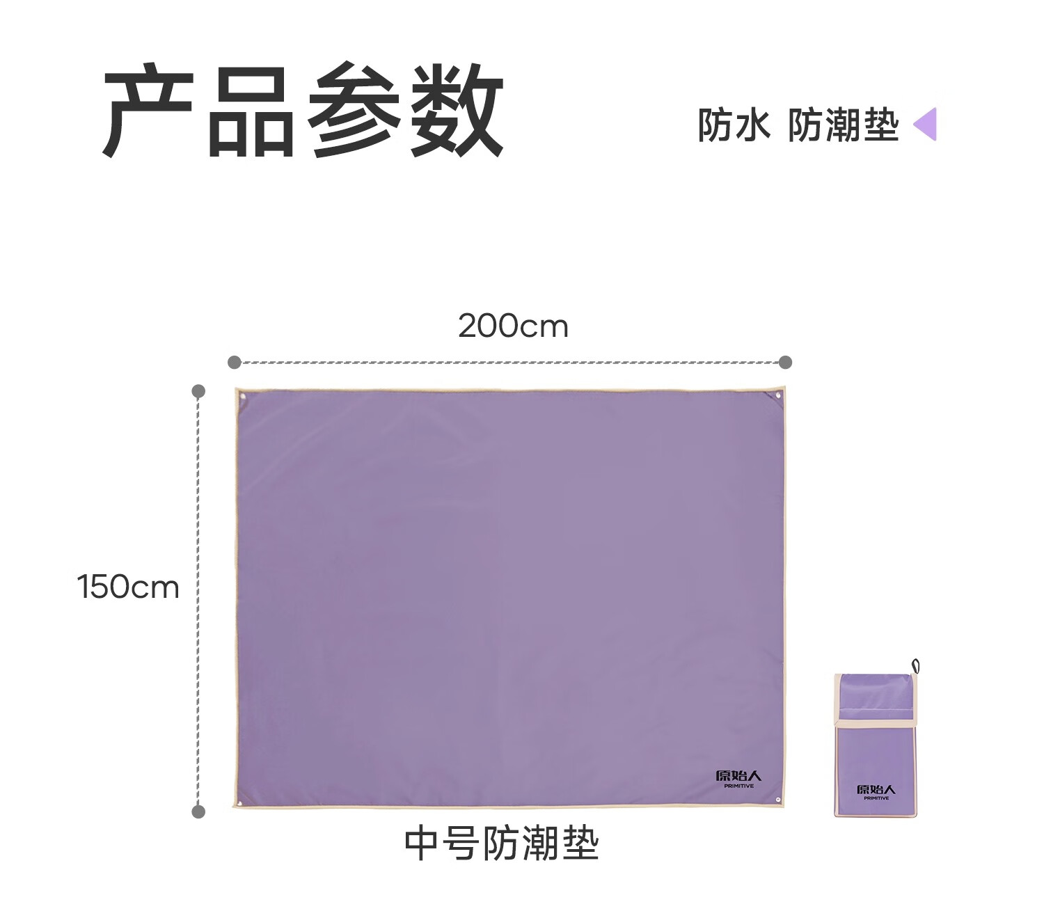 原始人(The Primitive)防潮地布户外地垫野餐垫防潮垫野外沙滩垫野营天幕地席防水装备 紫色【200*200cm】赠地钉