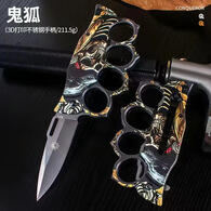 小刀瑞士高硬度折叠德国户外拳套防身军士刀战术多功能虎指破窗器 鬼狐刃长8.8cm60以下