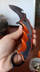 没什么说的,性价比超值,我看着评论还以为不锋利的,指头轻轻过了一下感受一下没用力,一看表层皮肤被划开了,这**不锋利?又不是那种大刀,小刀这样就已经很锋利了,手感很好,很帅,虽然不贵但是拿到手绝不廉价,看起来比图片上的要漂亮的多,拿到手实物很棒,宽厚利索