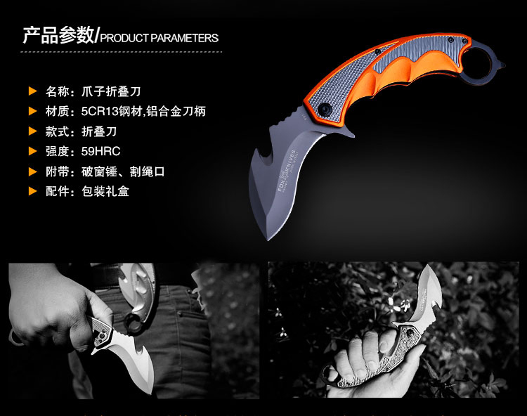 挺进者高硬度折叠爪刀 开刃锋利爪子刀 狐狸爪子刀 旋转随身折叠刀 全刃款