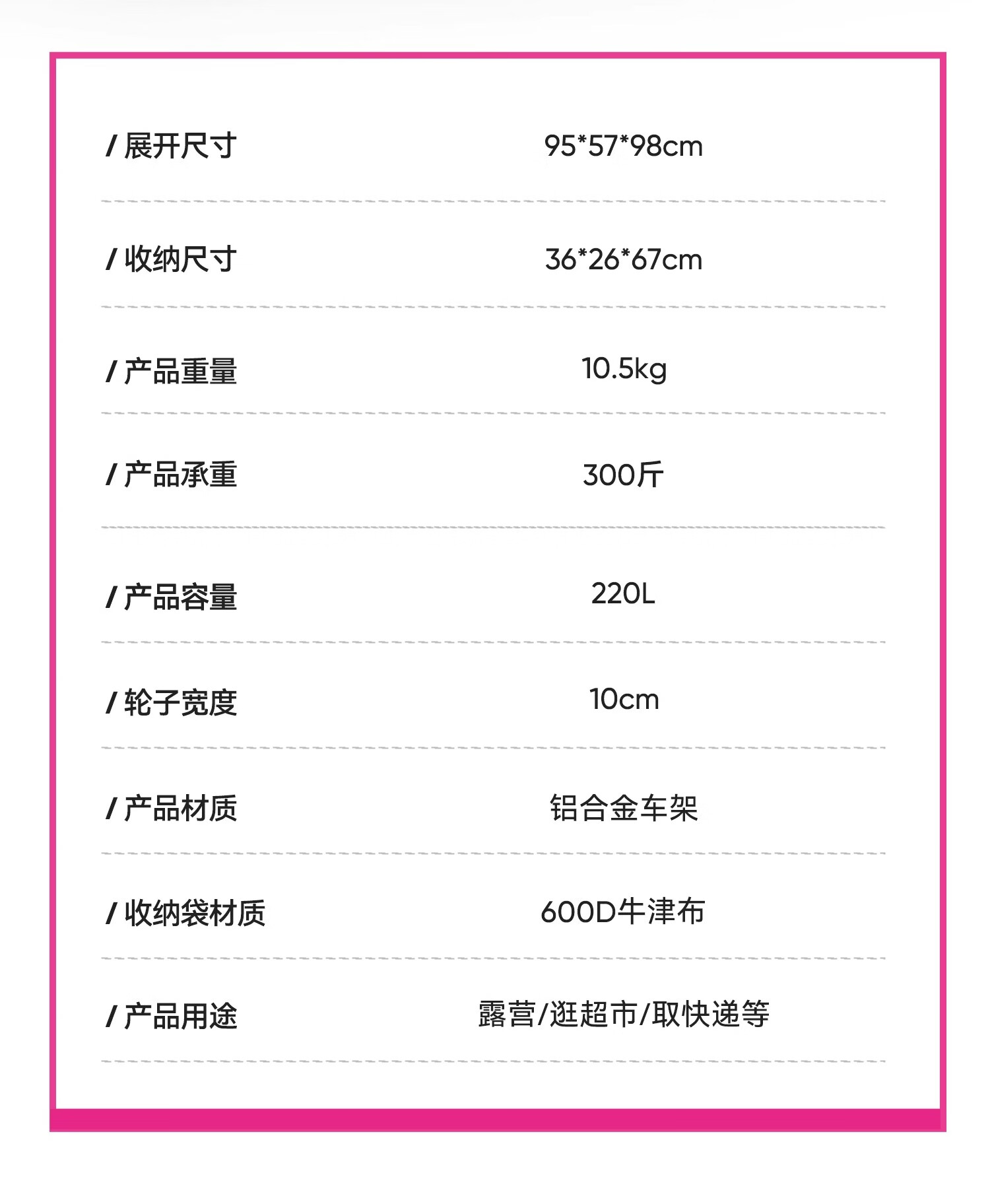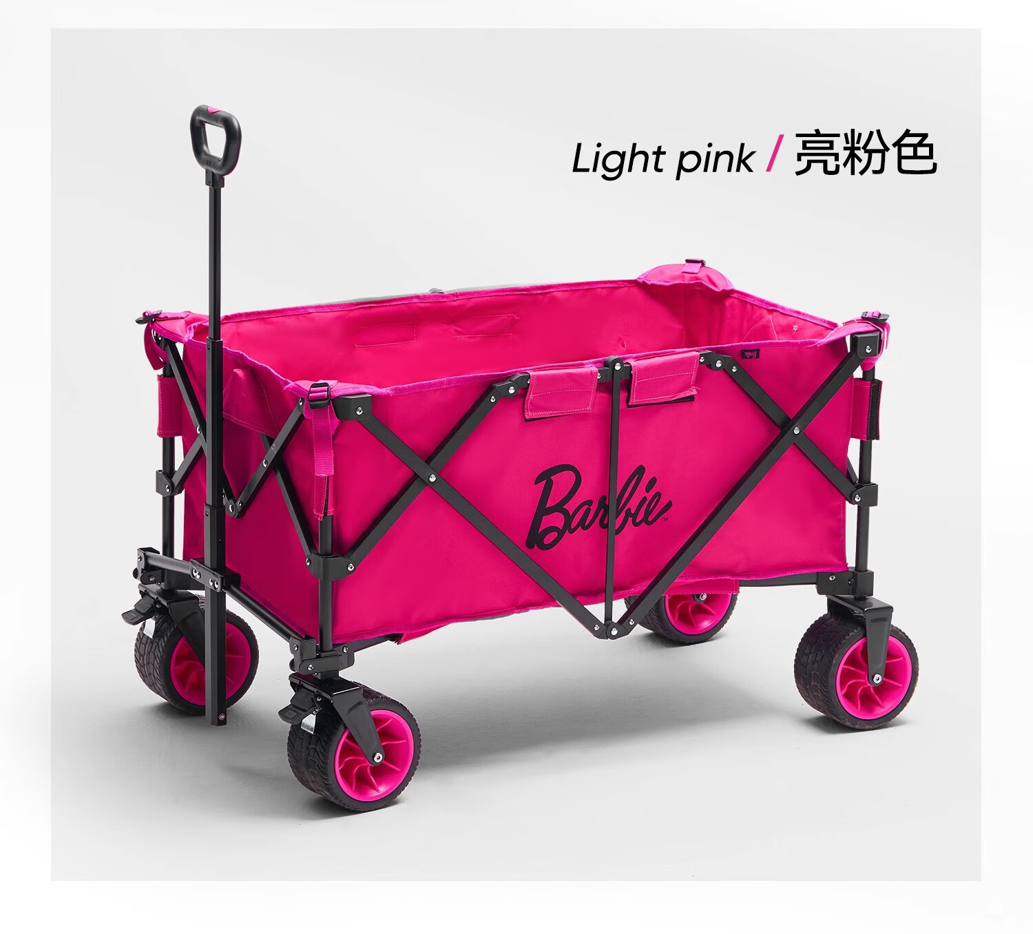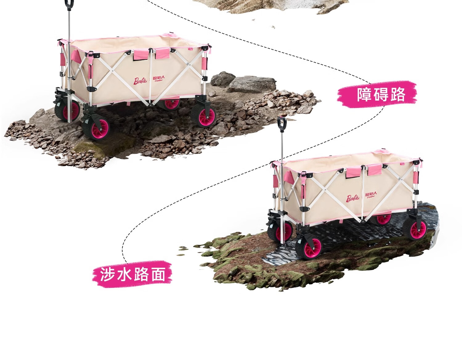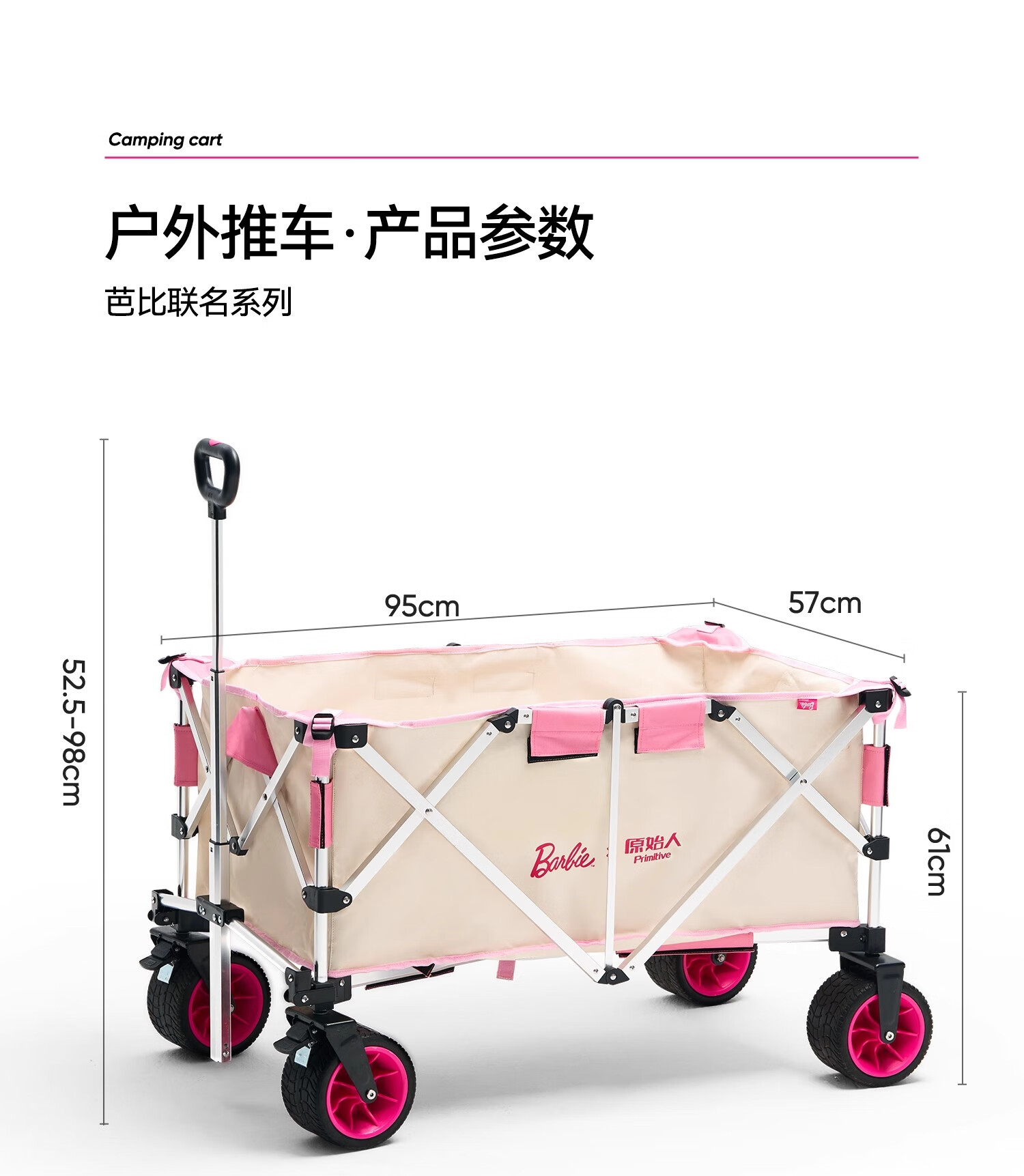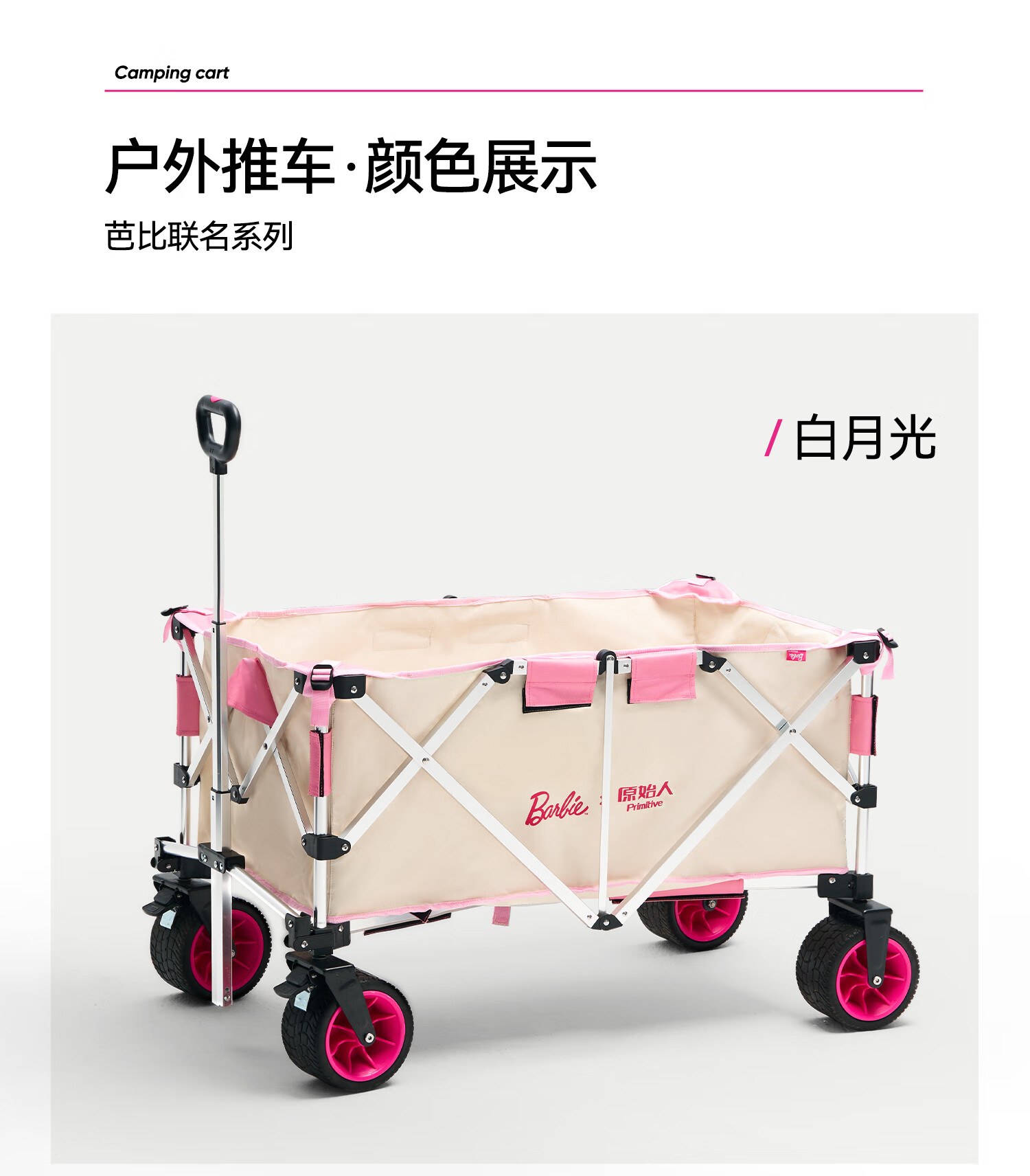 原始人飞云芭比联名露营车户外折叠收纳手推车营地车野餐野营拖车 飞云芭比联名亮粉 220L