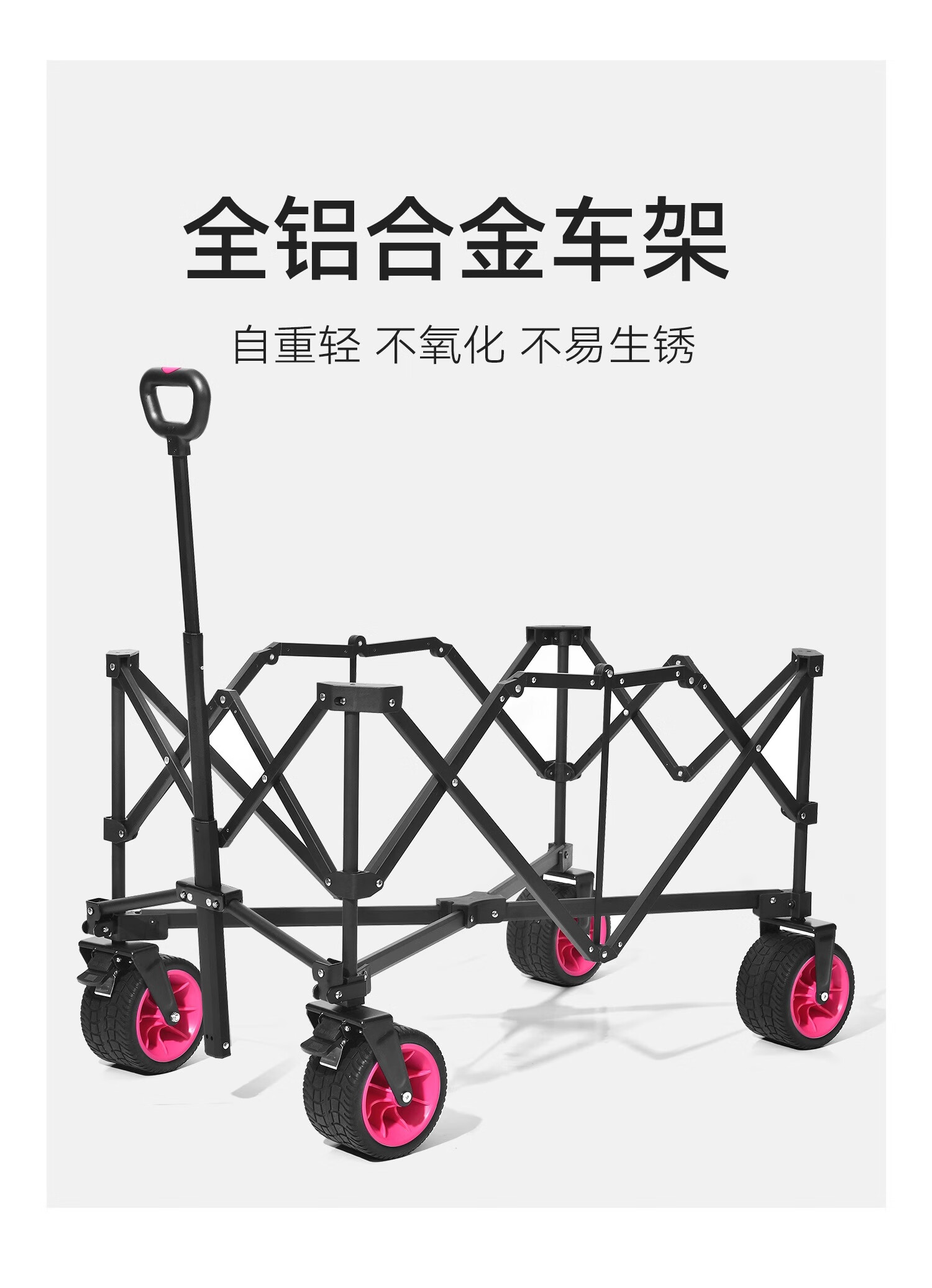 疆屿户外露营车折叠小推车旅行营地野营野餐摆摊儿童可躺野餐聚拢车 珊瑚橙【聚拢越野升级款】升级尾部加固横杆