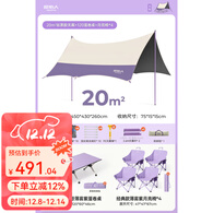原始人(The Primitive)户外黑胶天幕帐篷露营便携防雨防晒野营沙滩免搭速开野外遮阳棚 20㎡天幕+120紫色蛋卷桌+月亮椅*4