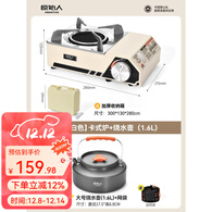 原始人(The Primitive)卡式炉户外便携式防风瓦斯炉煮茶炉野营燃气炉卡磁大功率露营商用 红外线米白色炉+1.6L烧水壶