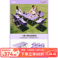 原始人蛋卷桌露营桌椅户外折叠便携式野餐全套装备新款桌椅套装野营摆摊 120cm薄雾紫+经典款月亮椅*6