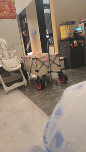这次出去玩全靠露营车了,车子结实,轮胎很宽很耐用,一个小孩子都能轻松拖动,真的特别好,孩子玩得开心,大人轻松,这车是颜值担当