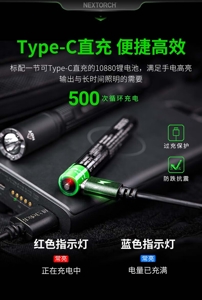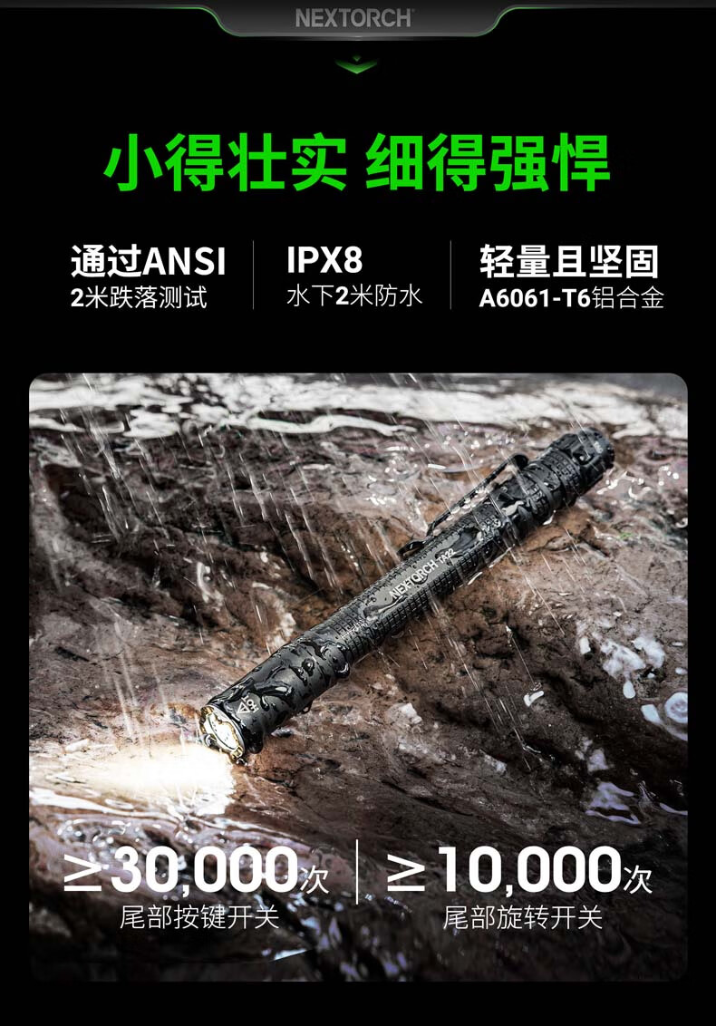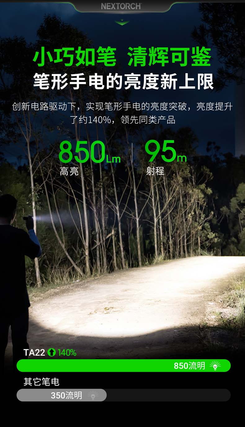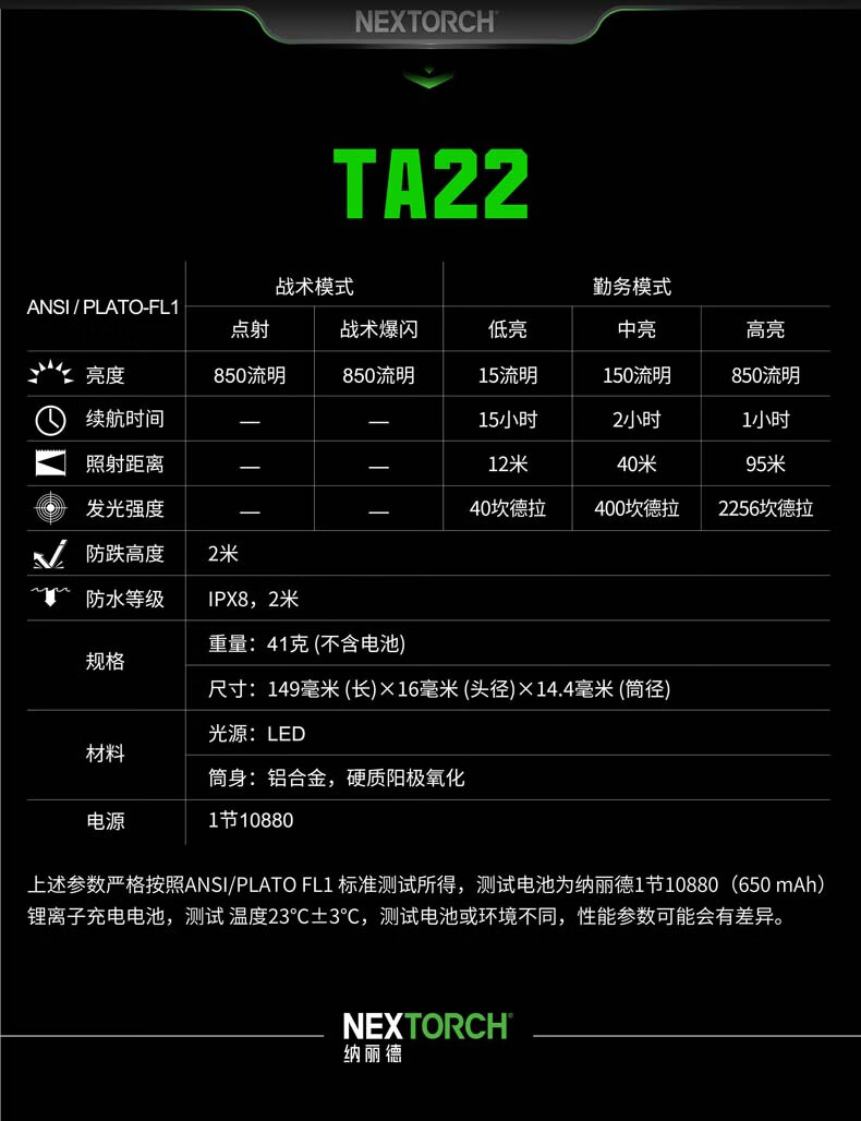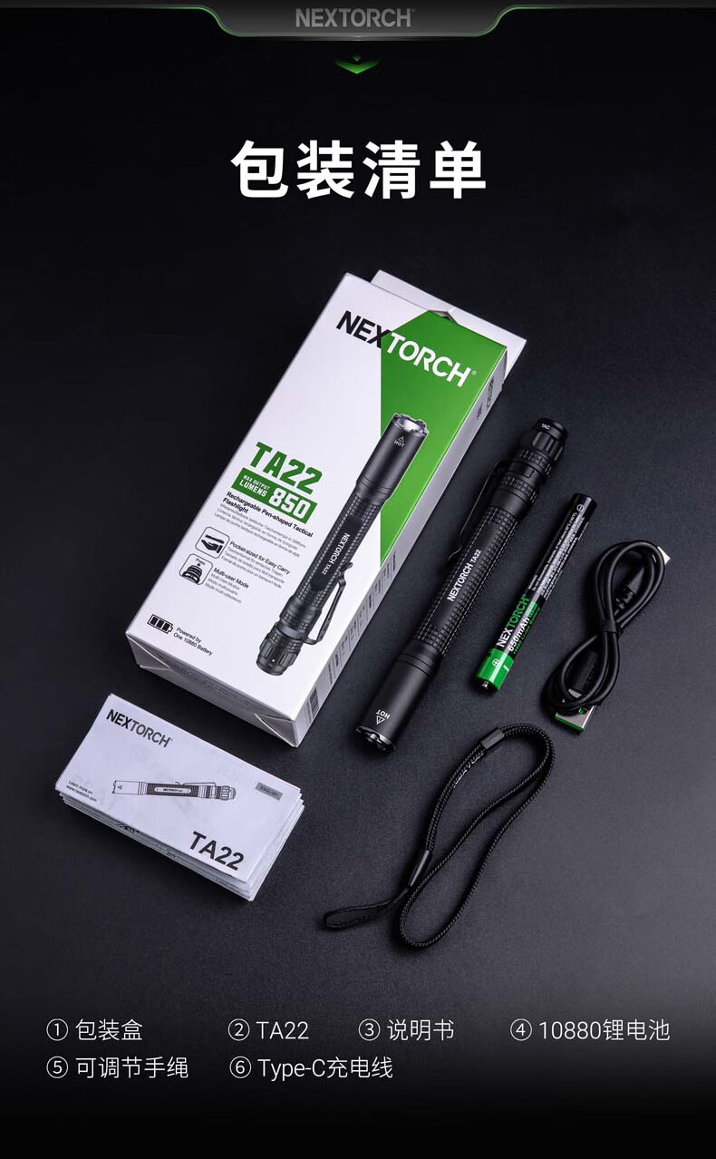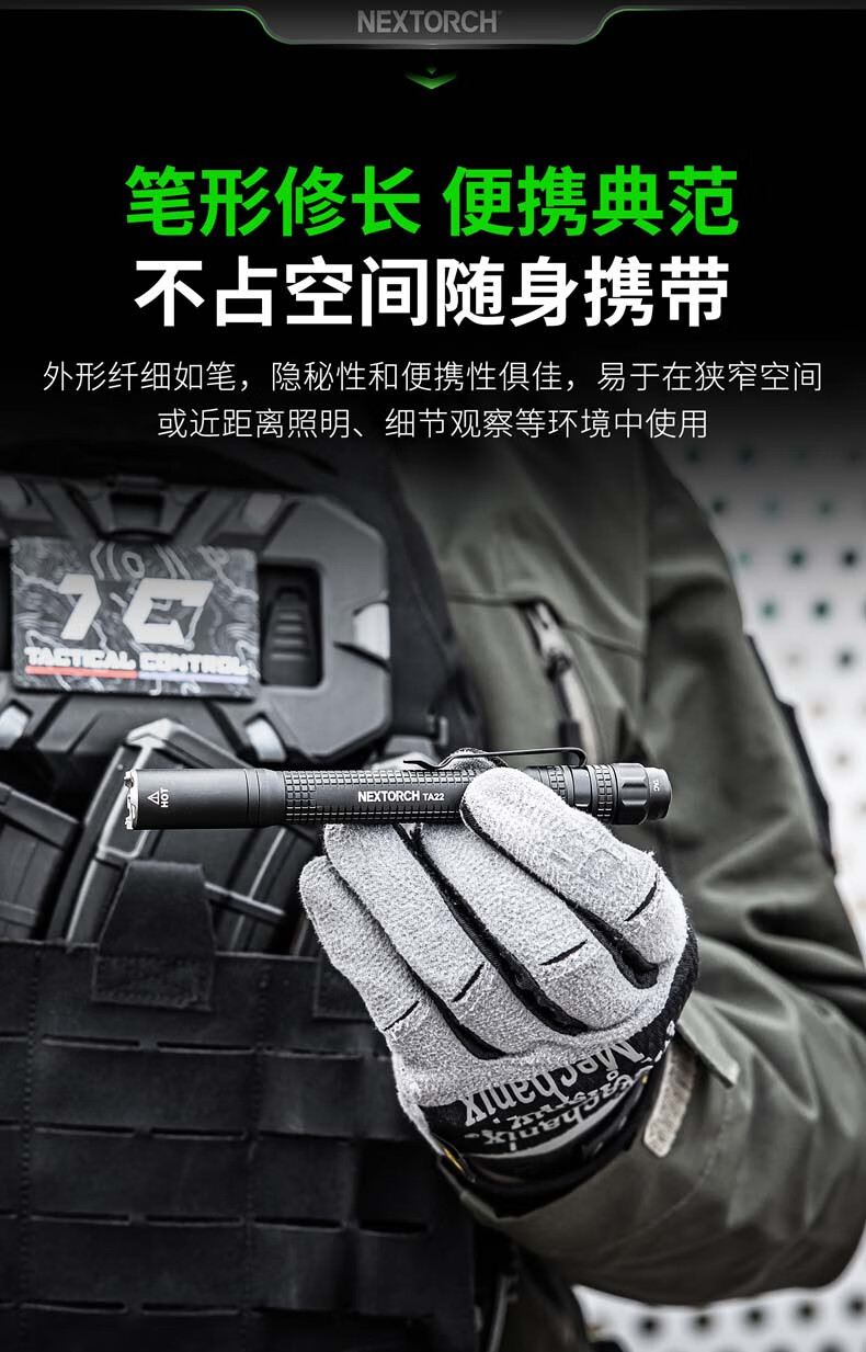 纳丽德纳丽德TA22笔形手电筒战术高亮迷你强光小型防身便携巡逻检修充电