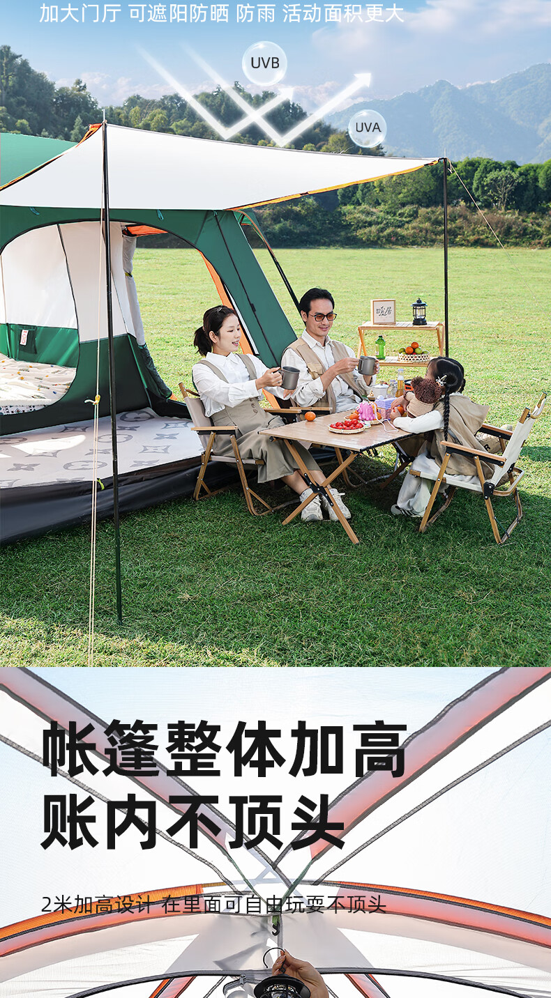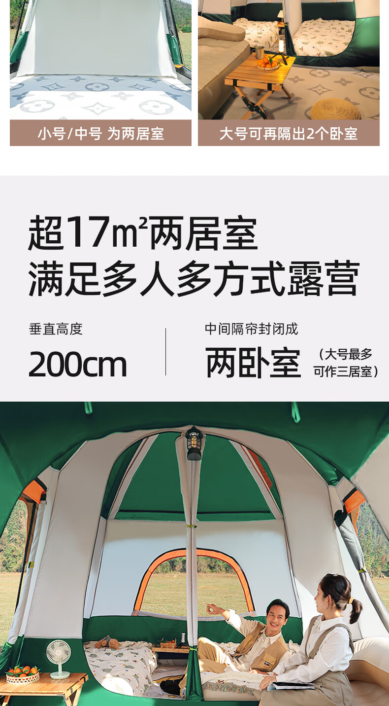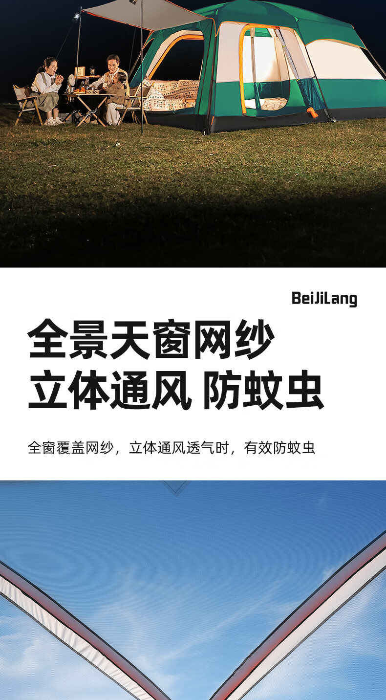 北极狼(BeiJiLang)帐篷户外露营防雨过夜两室一厅大空间双层防晒大帐篷野营装备全套 墨绿色【充气床×2套餐二】 中号6-8人【380*260*200CM】