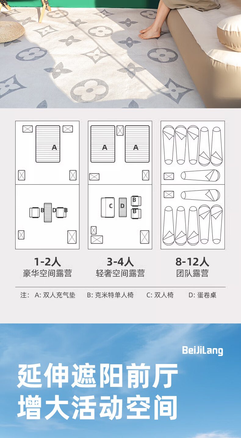 何佳功新燕尾天幕户外露营懒人免安装加厚黑胶防晒遮阳防雨速搭天幕 速搭型12㎡银胶天幕3.3*3.6米2-4人(1