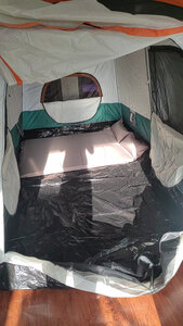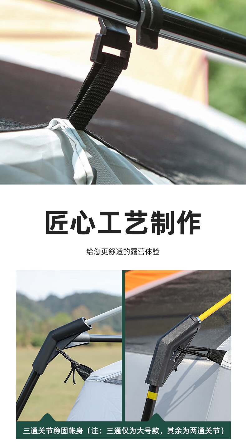 帐篷已经收到了,打开看了下,不是自动展开的,买的时候以为是提起来自动展开的呢,需要组装一会儿,帐篷的大小很合适,两室一厅加上门的位置可以遮阳,这点很不错,希望比较耐用吧~