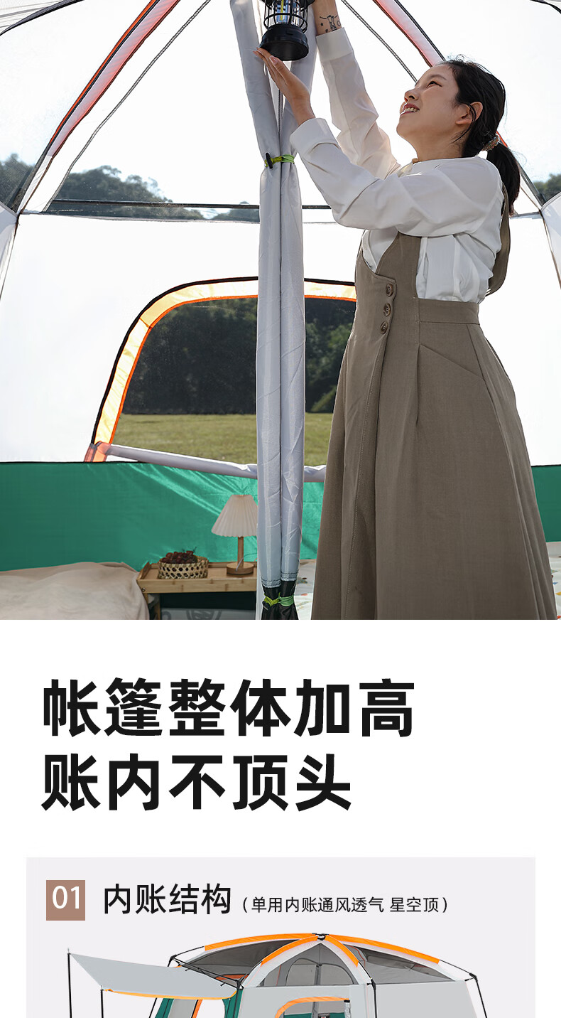 帐篷空间大,在里面休息很宽敞。质量也不错,搭建也很方便,收帐篷也很快,一个人十分钟搞定。只是第一次住帐篷,然后搭在太阳🌞下,把我和小孩从帐篷热得跑到树下乘凉,哈哈😃😃!