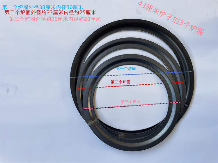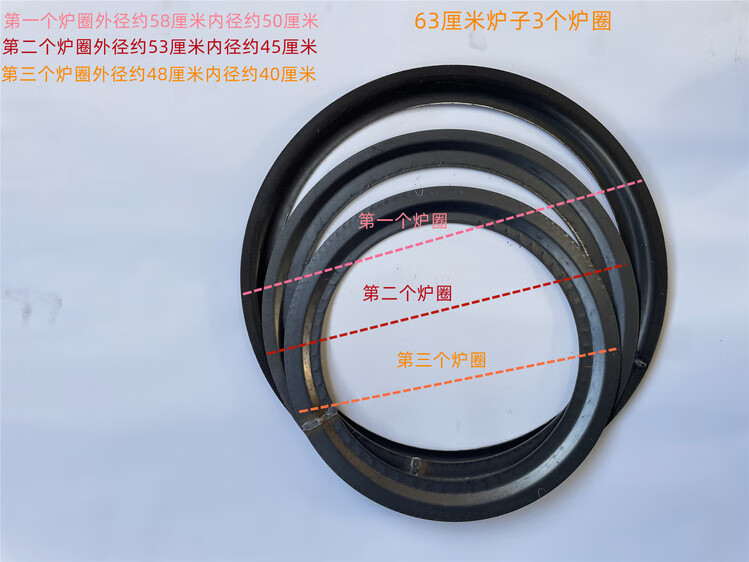 BMAD柴火灶锅圈家用加厚全套配件钢板炉圈盖法兰圈垫圈铁圈炉子煤球炉 ./,3个圈外径为58-53-48厘米 适
