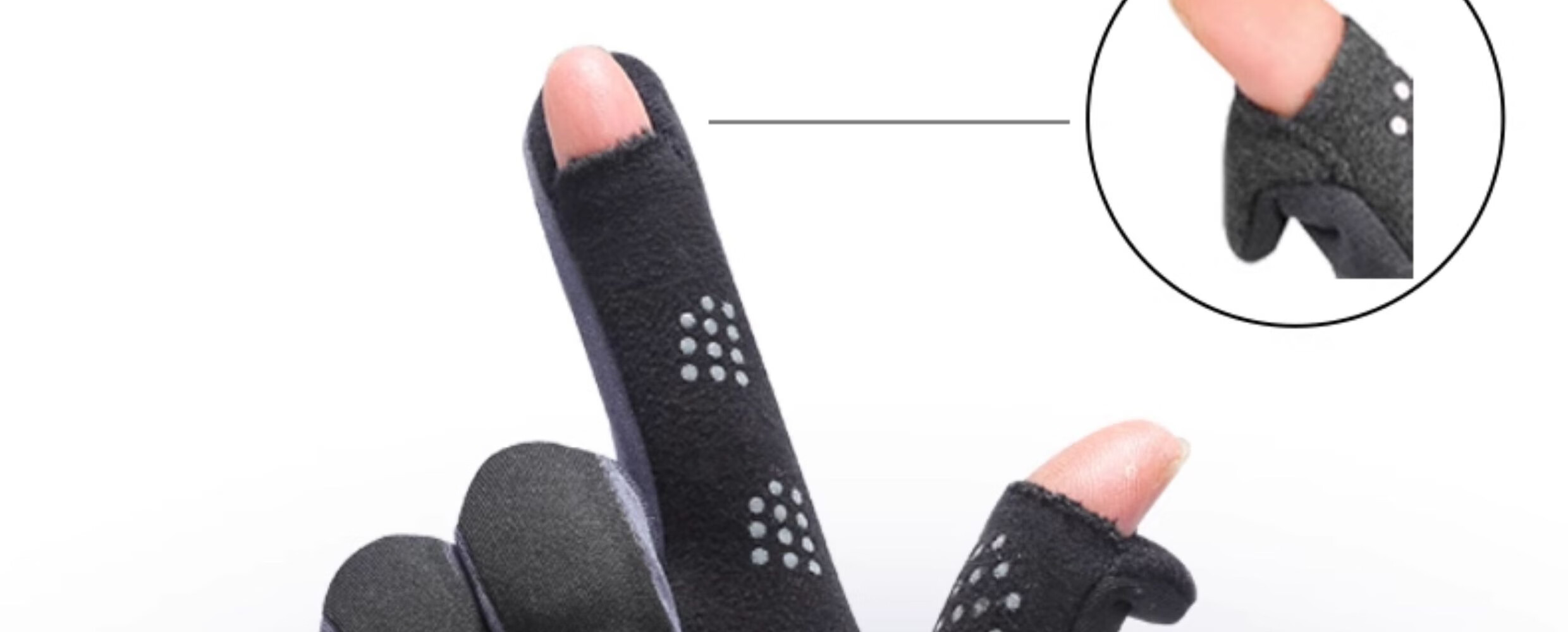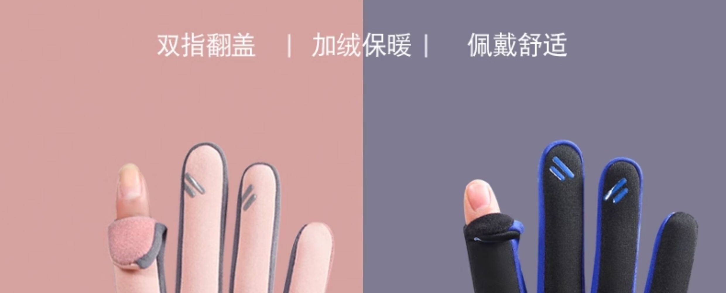 冬季手套男女款保暖户外骑行防滑外卖骑手露指触屏加绒防寒防水 灰粉色