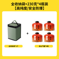 北岳户外扁气罐高山高原气瓶露营便携野外炉子炊具瓦斯丁烷燃气煤气瓶 全收纳袋+小罐*4瓶装【高纯度】