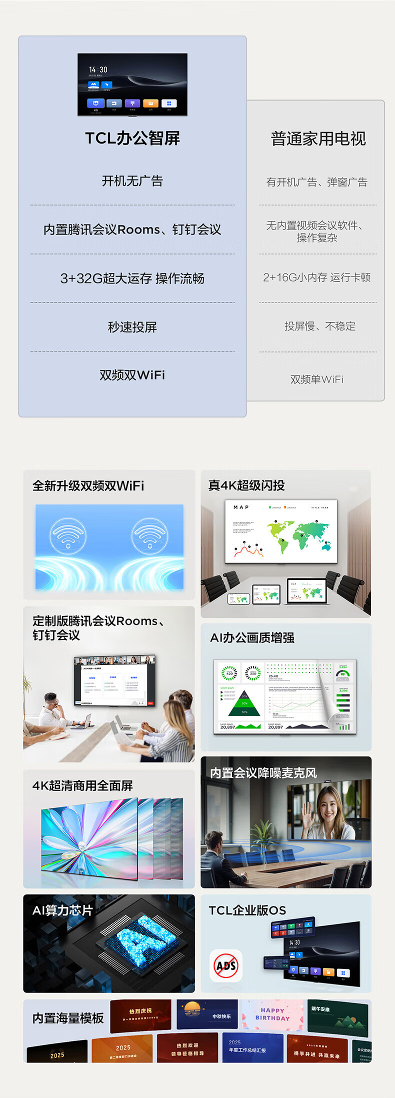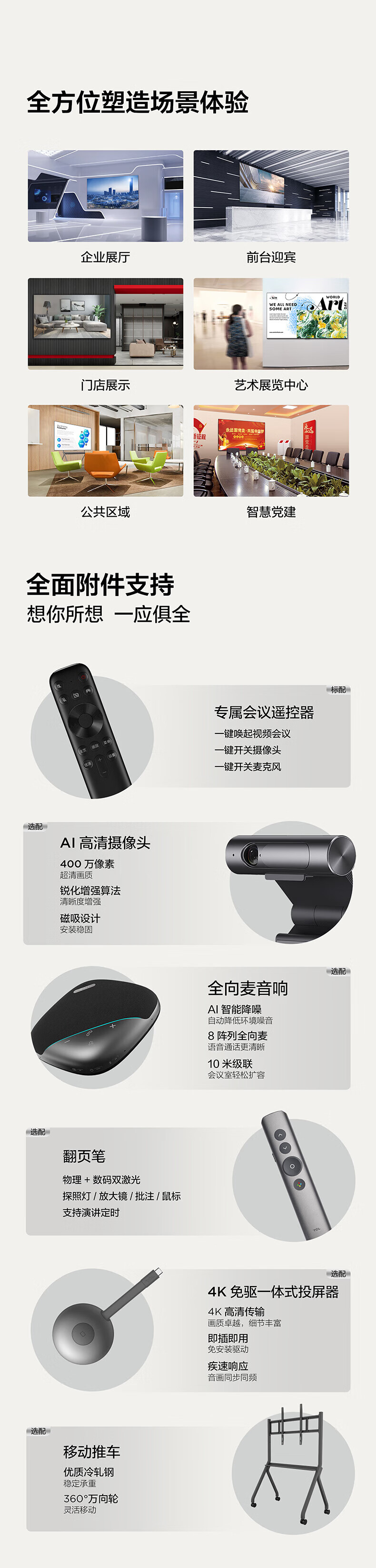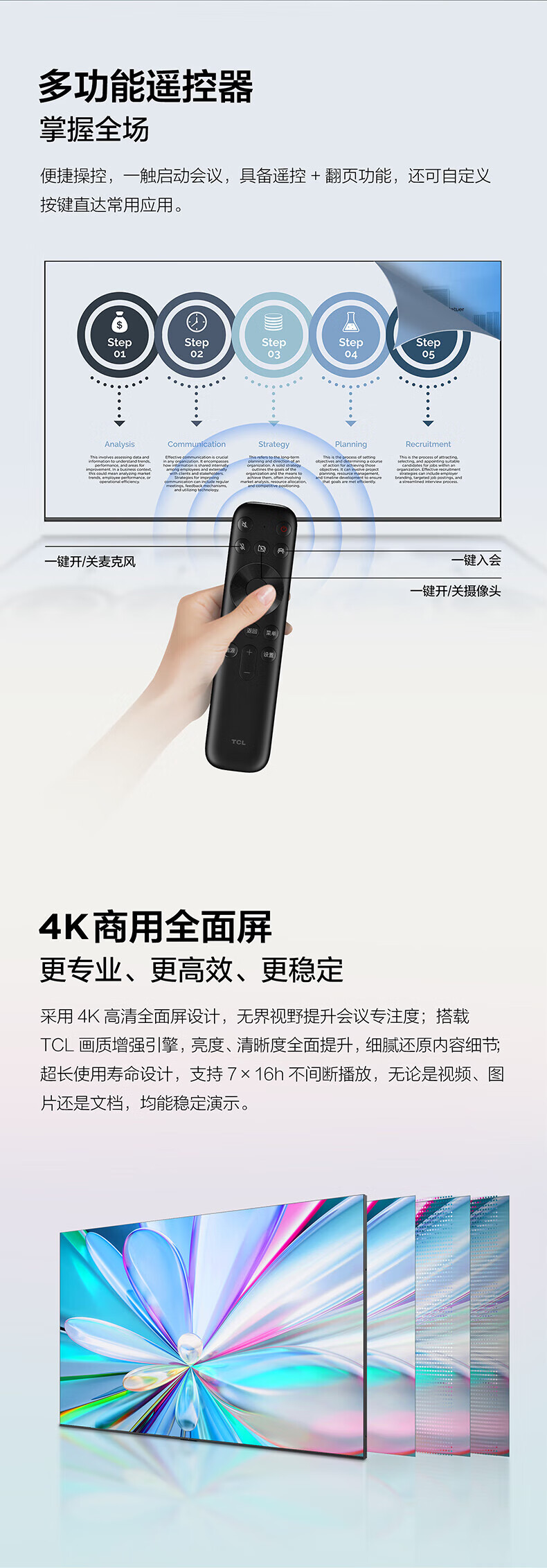 TCL98/86/75/65英寸会议电视平板一体机无线投屏4K超清移动超薄会议室显示屏办公家用培训商用电视机教学大屏 75英寸 非触控/会议电视/安卓/带挂架 咨询立减XXX,咨询包满意价格