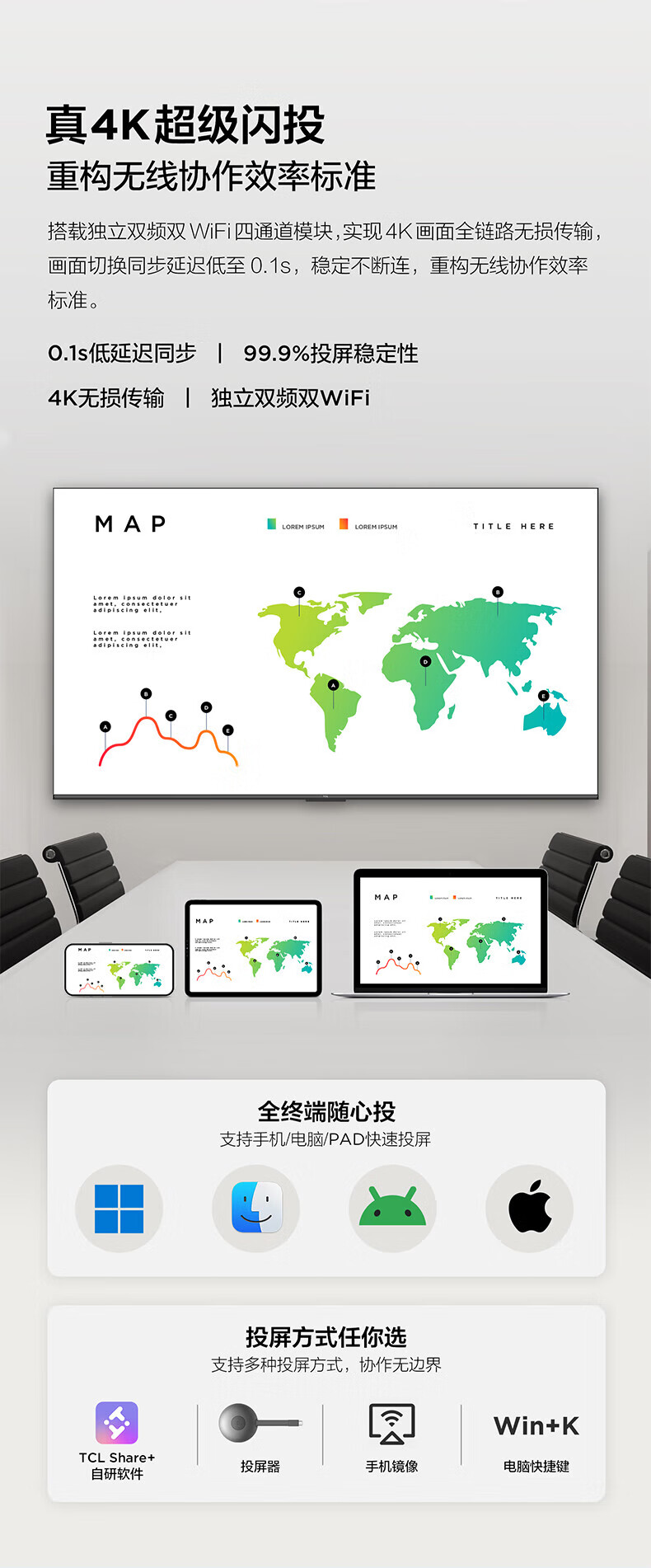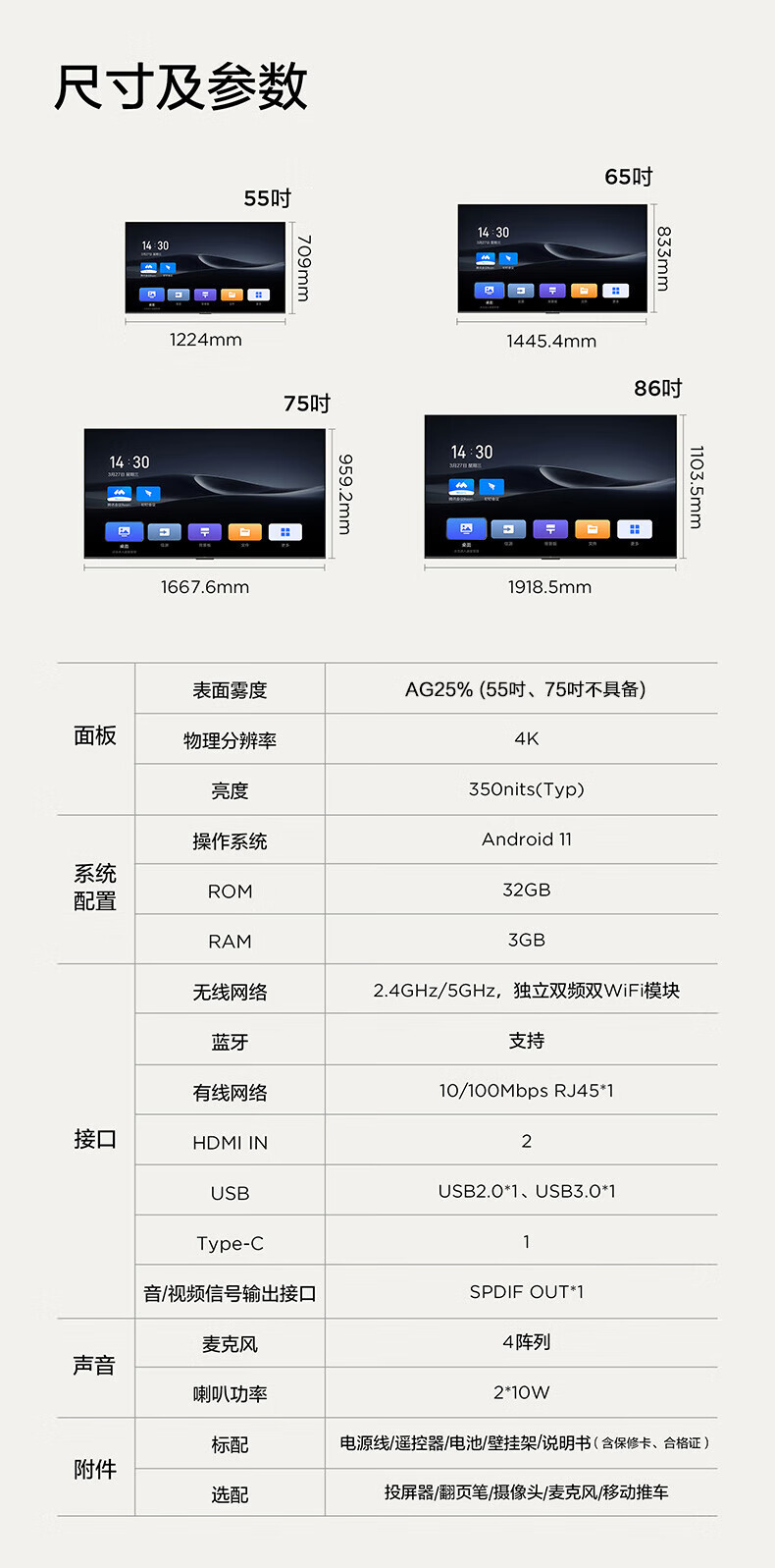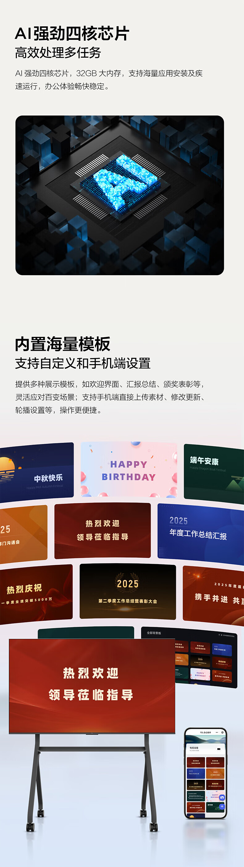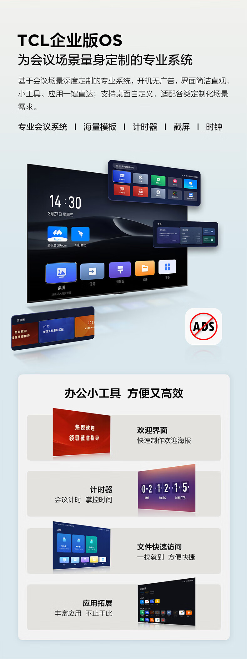 TCL98/86/75/65英寸会议电视平板一体机无线投屏4K超清移动超薄会议室显示屏办公家用培训商用电视机教学大屏 75英寸 非触控/会议电视/安卓/带挂架 咨询立减XXX,咨询包满意价格