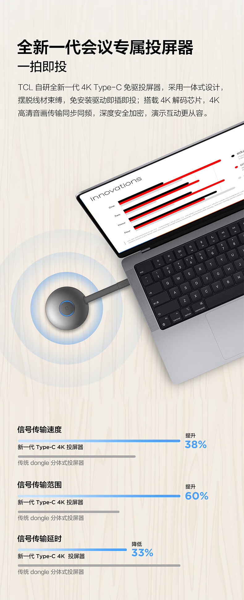 台喜(TaiCD)会议平板 无线传屏器 无线传输器 传屏器 标配