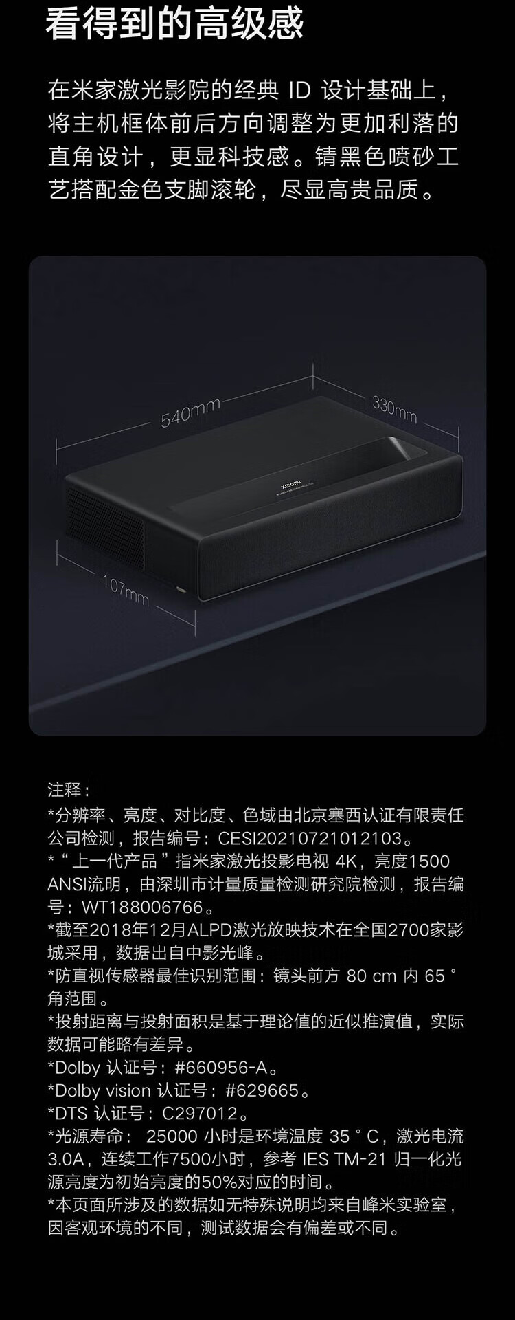 海信激光影院2 4K 1S 4K激光投影电视智能家居超短焦150英寸 小米影院2 4K+150寸黑栅抗光硬屏
