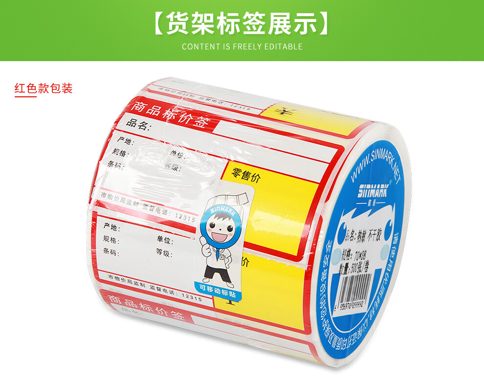京东收银机适配会员价和普通零售价热敏标签超市货架标价签价格牌条形码标价签价格标签 红色不带会员价(70*38)500张/卷